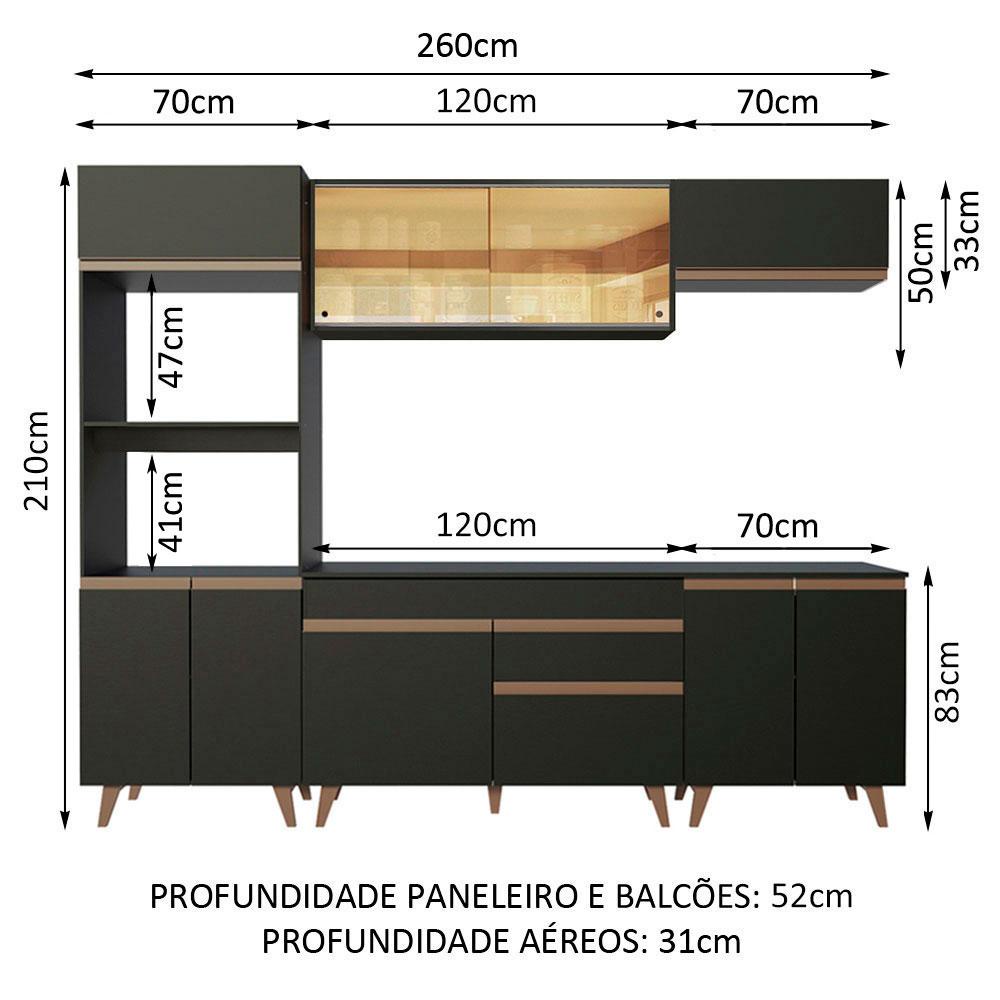 Cozinha Completa Madesa Reims 260002 com Armário e Balcão - Preto