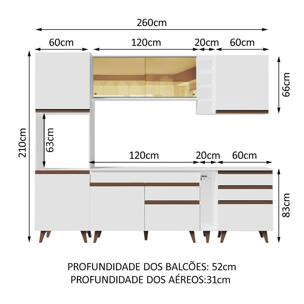 Cozinha Completa Madesa Reims 260004 com Armário e Balcão - Branco