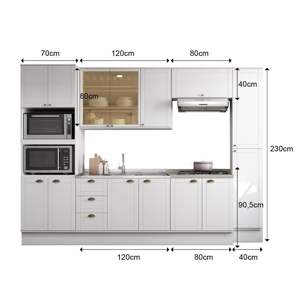 A Cozinha Milla Look foi feita para trazer praticidade e funcionalidade ao seu dia a dia. Esta composição foi desenvolvida pensando em atender às necessidades de todos usuários, unindo praticidade com estilo. Seu design inspirado nas cozinhas clássicas estilo americano possui detalhes usinados nas frentes, deixando qualquer ambiente mais bonito. Com acabamento em MDF e BP, dobradiças com amortecimento e puxadores metálicos em formato ponto e concha, na cor ouro velho, proporciona um acabamento de alta qualidade. Especificações da composição: Medidas totais: Largura: 310 cm | Altura:230 cm | Profundidade:51 cm Peso total:206,1 Kg Matéria Prima: BP/MDF Acessórios: Puxadores metálicos Sistema de abertura: Dobradiças com amortecimento | Corrediças telescópicas Garantia: Os produtos possuem garantia de 03 meses (se usado em condições normais), contra defeito de fabricação, ou componentes utilizados. Esta garantia não cobre defeitos por uso inadequado ou abusivo, falta de cuidados e desbotamento natural dos revestimentos. Condições de perda da garantia: - Mau uso ou manuseio incorreto. - Desbotamento causado pela exposição direta da luz solar. - Danos causados por agentes da natureza, como inundações ou acidentes de qualquer espécie. - Uso indevido de produtos abrasivos para realizar a limpeza. - Decurso do prazo estabelecido. Recomendações para uma boa conservação: - Dicas para limpeza e conservação do seu produto, você encontrará no esquema de montagem que o acompanha. Informações importantes: - Trabalhamos para apresentar imagens fiéis ao produto real. Porém, as cores podem sofrer variações de acordo com o monitor, iluminação do ambiente em que se encontram e até por sua percepção visual comparado ao ambiente residencial. - Desta forma, as imagens são meramente ilustrativas. - Todos os objetos decorativos não acompanham o produto. - O produto é enviado desmontado. - O produto acompanha manual com instruções para a montagem. - A empresa Móveis Carraro não realiza o serviço de montagem.