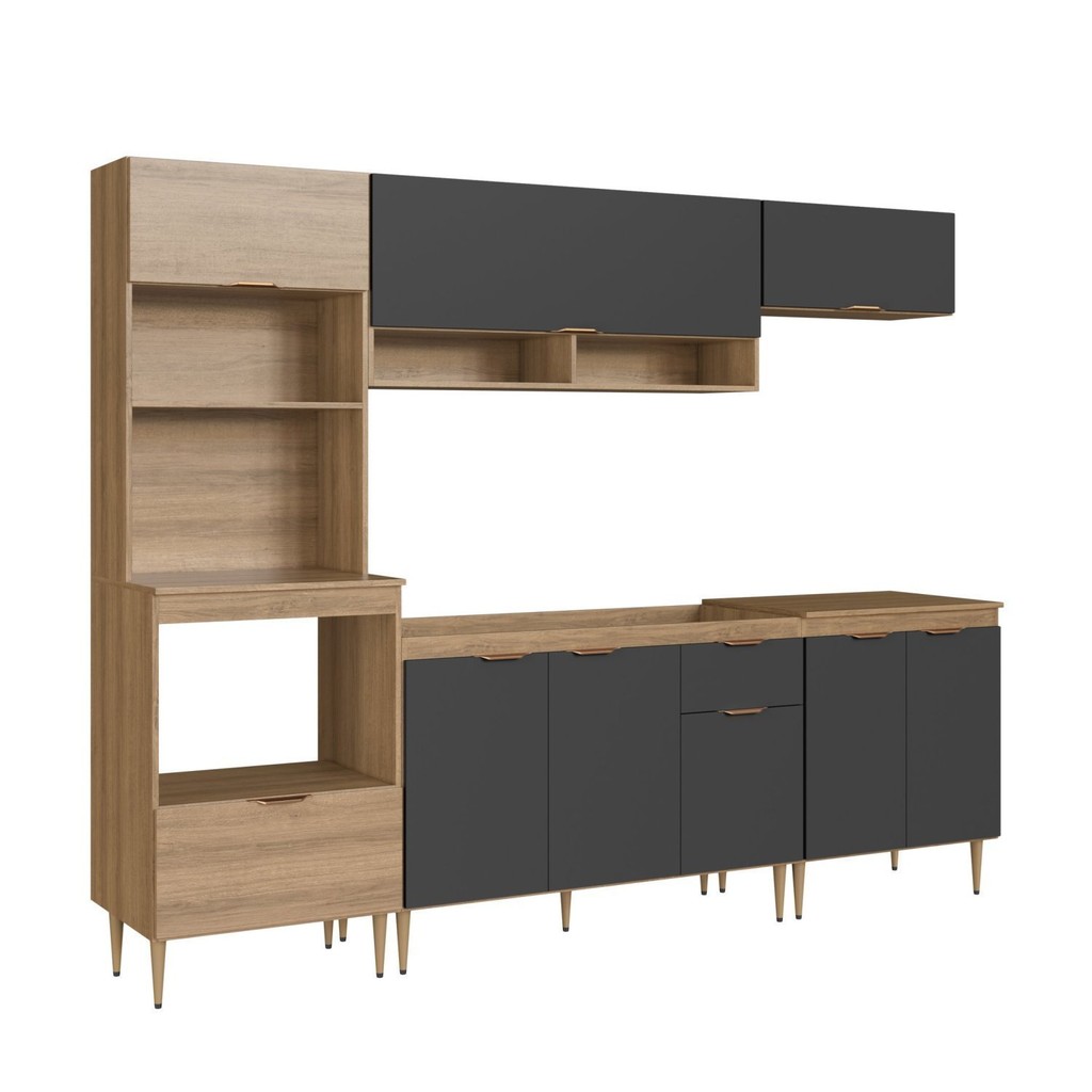 Cozinha Completa Modulada 5 Peças com Torre Quente para 2 Fornos e Espaço para Cooktop Veneza Modulada Mel/Grafite