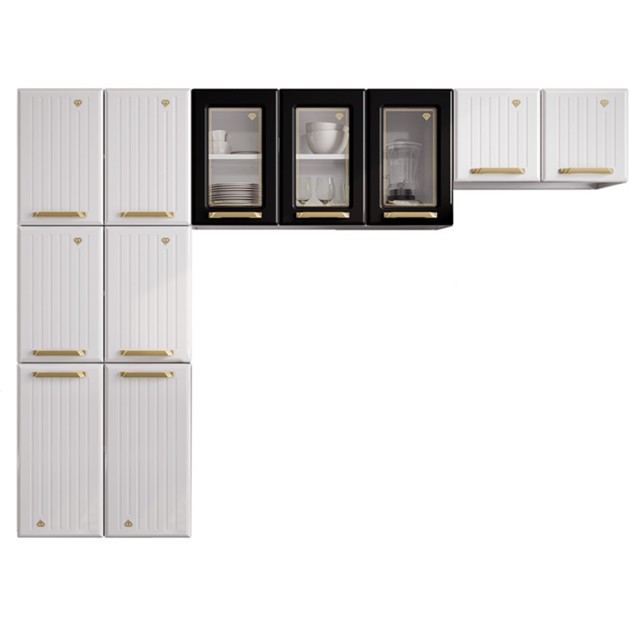 Cozinha de Aço Compacta Telasul Diamante C/ Vidro 3Pçs Branco A Cozinha Diamante é a aposta certa para deixar seu ambiente mais lindo e prático. Seus 3 módulos foram cuidadosamente desenvolvidos para atender às exigências de armazenamento, bem como oferecer toda a qualidade que a sua casa merece. Todos os módulos são robustos - fabricados inteiramente em aço - e passam por pintura eletrostática de acabamento brilhoso, um processo que confere qualidade, proteção anticorrosiva e mais resistência. O espaço interno do Paneleiro é perfeito para acomodar panelas, louças, travessas ou alimentos - de maneira organizada e muito funcional. O Armário aéreo é um daqueles itens queridinhos para armazenar e também decorar - além dos belos vidros serem serigrafados e temperados, para maior segurança. As delicadas linhas verticais das portas desta cozinha – inspiradas na tendência atual da decoração - em combinação com o aplique em alto relevo do “diamante” e o bonito puxador em tom dourado, fazem o ambiente brilhar. Complemente essa cozinha outros itens da mesma linha para criar o ambiente dos seus sonhos. Medidas externas do produto: 2,45m (L) X 1,80m (A) X 0,29 (PROF) Informações técnicas: Peso do móvel: 40,2kg Puxador: Plástico Número de portas: 11 Número de portas com vidro: 3 Cor: Branco Brilhante Portas com design exclusivo: linhas verticais Vidros serigrafados e temperados Puxadores e apliques Dourados Ótimo espaço interno Garantia: 12 (doze) meses para defeitos de fabricação Dúvidas Frequentes: O produto é novo? Sim. Todos os produtos de nossa loja são itens novos, devidamente embalados, com garantia de fábrica e respectiva Nota Fiscal. As cores do produto são exatamente como no anúncio? As cores podem variar de acordo com o monitor, a iluminação do ambiente ou sua percepção visual. Quais são as medidas do produto? Todos os nossos anúncios possuem imagens com medidas, além de constar essa informação também nos textos descritivos. Como é calculado o frete? O valor de envio é calculado considerando: peso e volume do produto, e o CEP de destino. Como conservar o produto: - A limpeza deve ser feita com pano macio e seco ou levemente umedecido com água e sabão neutro. Não devem ser utilizados produtos como palha de aço ou qualquer material que arranhe a superfície de seu produto. - Evite guardar substâncias como sal, vinagre, limão, cebola, etc. em contato direto com o móvel. - Recomenda-se forrar as prateleiras com papel ou plástico liso nas áreas de maior atrito Características: - Possui Vidro: Sim - Espaço Para Forno: Não - Acompanha Tampo: Não - Acompanha Pia: Não - Móvel Suspenso?: Sim - Pode Ser Montado Invertido?: Não - Possui Puxadores?: Sim - Possui Prateleiras?: Sim - Possui Espelho?: Não - Possui Portas?: Sim - Possui Gavetas?: Não - Necessita de Montagem: Sim - Possui Espaço para Pia?: Não - Espaço Para Micro-ondas: Não - Escala de brilho: Brilhante - Material da Estrutura: Aço - Tipo de móveis de cozinha: Armário Balcão - Material do Puxador: Poliestireno - Peso Suportado nas Prateleiras: 15 Kg - Quantidade de Prateleiras: 6 - Material das Dobradiças: Metálica - Tipo de Porta: Portas de Bater - Espessura da Porta: 0,6 mm - Material da Porta: Aço - Quantidade de Portas: 11 - Espessura da Estrutura: 0,4 mm - Revestimento /Acabamento: Pintura - Recomendação de Manutenção: Utilizar pano levemente umedecido, seguido de pano seco. Não utilizar quaisquer produtos abrasivos. - Observação: Objetos decorativos que aparecem nas imagens, não acompanham o produto. - Indicação de Uso: Cozinha - Como os Móveis Chegarão na Minha Casa: Desmontado em caixas, acompanhado de todas as peças, ferragens e manuais para montagem. - Grau de Dificuldade da Montagem: Médio: pode ser montado por mais de uma pessoa e/ou necessite de maior conhecimento para montagem - Sistema de Montagem: Parafusos, cavilhas, minifix e acessórios plásticos. - Garantia (dias): 365