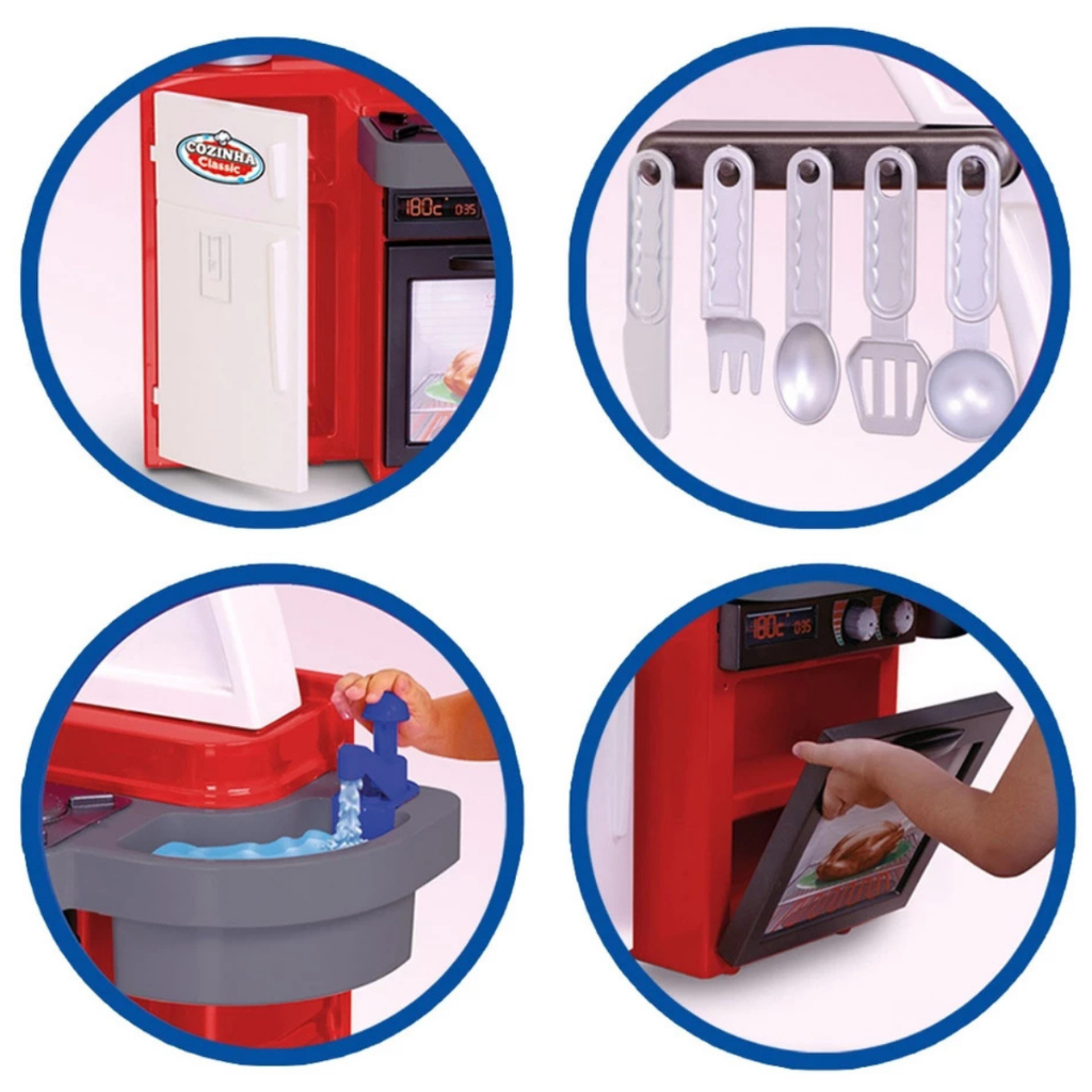 Cozinha Faz De Conta Vermelha Classic com Fogão Geladeira e Pia que Sai Água de Verdade Infantil Cotiplás