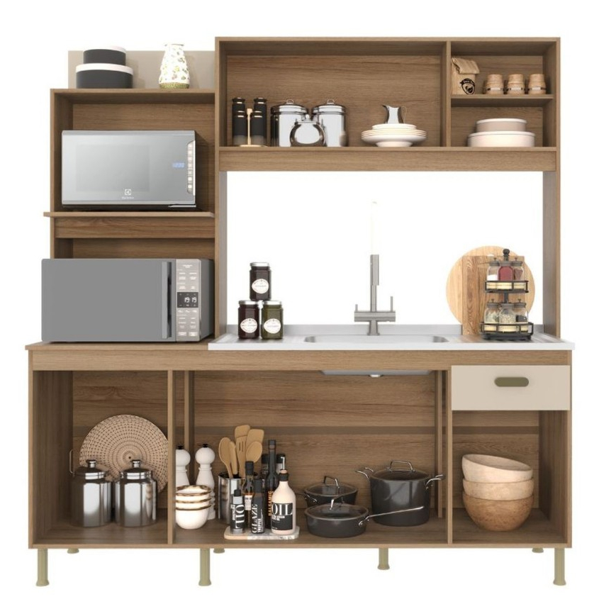 Cozinha com módulos independente de fácil arranjo, pintura fosca fácil de limpar e amplo espaço interno. Características Chapas: 15 mm Dobradiça: Metálica Corrediça: PVC duro Puxadores: PVC duro Dimensões Altura: 189 cm Largura: 182 cm Profundidade: 53 cm Peso: 70kg Garantia do Fabricante: 6 meses *Imagem meramente ilustrativa* Tampo e itens decorativos não acompanham o produto.