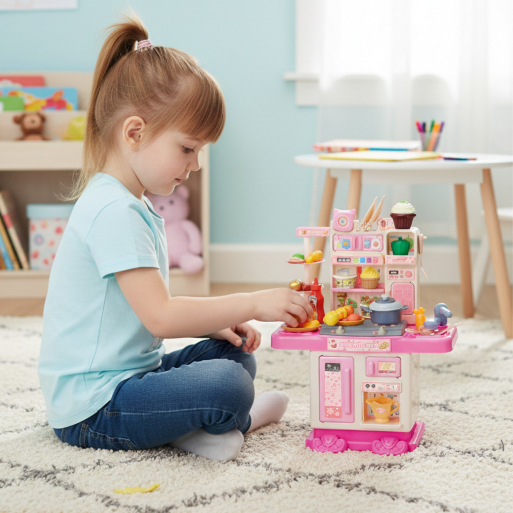 Cozinha Infantil Completa Com Luz e Som E 43 Acessórios Fogão Rosa - Castela