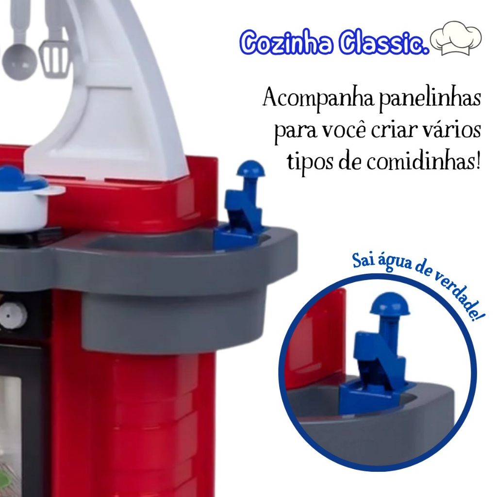 Cozinha Infantil Completa Geladeira Forno Pia Prato Frigideira Panela Classic - Cotiplás