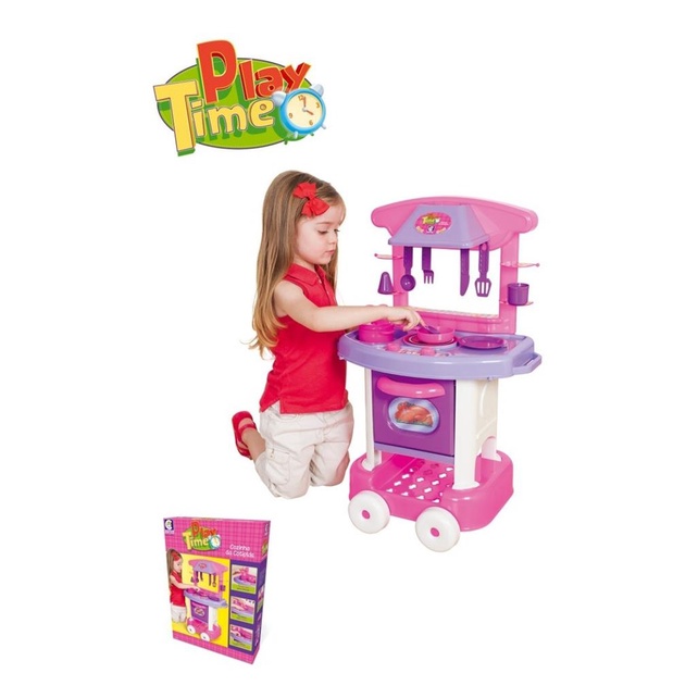 Uma cozinha rosa completa para criancas de todas as idades. Possui uma torneira que gira, botoes do fogao que giram e fazem barulhinho e um forninho com a porta que abre e fecha de verdade. Vem com diversos acessorios: pratinho, panelinha com tampa, frigideira, copo, saleiro e talheres. Referencia: 2008 Marca: Play Time Fabricante: Cotiplas Idade Minima Recomendada: 3 anos Altura (cm): 66 Franquia: Play Time Acessórios: Sim Luzes: Não Som: Não CE-BRI/QB 0228 IQB-OCP 006