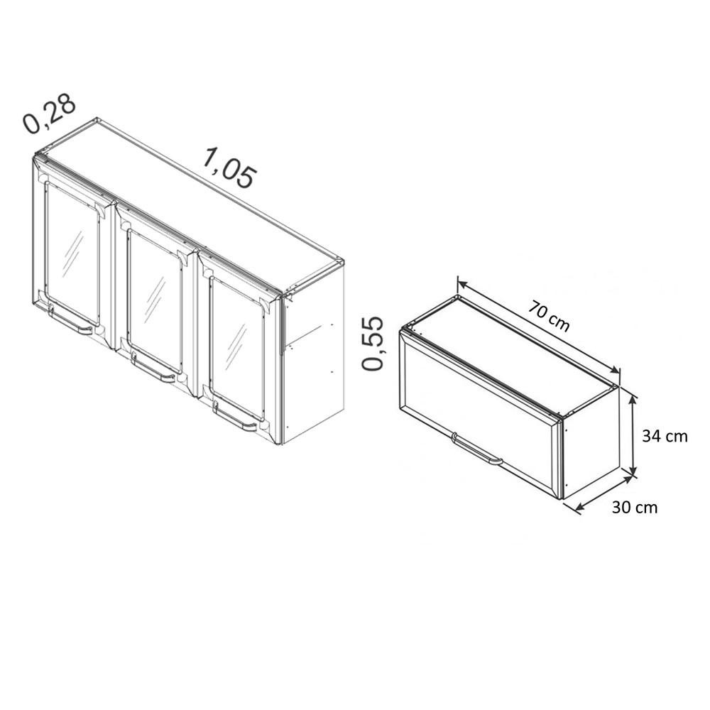 Kit Armário Aéreo 3 Portas Preto IP3-105 com Armário Aéreo 1 Porta Horizontal Preto IPH-70 Sua cozinha completa e com a sofisticação que você merece! O conjunto Balcão 2 Gavetas e 3 Portas, com o Armário Aéreo 1 Porta Horizontal e Armário Aéreo 3 Portas Itatiaia é a sua opção de aproveitamento de espaço e estilo para sua Cozinha. O formato sugerido em "meia asa D" fica adequado para receber fogão e geladeira nas laterais, ou mesmo ocupar espaços disponíveis sem sobrecarregar sua cozinha ou espaço externo. Os produtos Itatiaia trazem praticidade e estilo com a qualidade de quem é referência em cozinhas. ATENÇÃO: - Não nos responsabilizamos pela montagem / instalação dos produtos. - Imagens meramente ilustrativas. - Verifique com os fabricantes dos produtos eventuais limitações à utilização de todos os recursos e funcionalidades. Modelo: Armário Aéreo 3 Portas Luce Preto + Armário Aéreo 1 Porta Horizontal Preto Linha: Luce Material: Aço Pintura / Revestimento: corpo e porta revestidos com pintura eletrostática a pó Acabamento da pintura: brilho Corrediças: Telescópicas Quantidade de portas: 4 Quantidade de prateleiras: 3 Possuí Vidros: Não Necessita Montagem: sim Sistema de montagem: Parafusos - Armário de Cozinha Aereo Itatiaia Luce 3 Portas IP3-105 Dimensões do produto montado (cm): 28,0 (P) x 105,0 (L) x 55,0 (A) Peso do produto com embalagem (kg): 11,67 - Armário de Cozinha Aereo Itatiaia Luce 1 Porta Horizontal IPH-70 Dimensões de cada produto montado (cm): 26,0 (A) x 70,0 (L) x 28,0 (P) Peso do produto com embalagem (kg): 5,10 Garantia: 12 meses SAC: 0800 032 6111