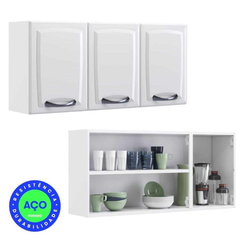Cozinha Modulada 2 Peças Itatiaia Balcão 3 Portas e Armário Aéreo 3 Portas Aço New Premium Branco