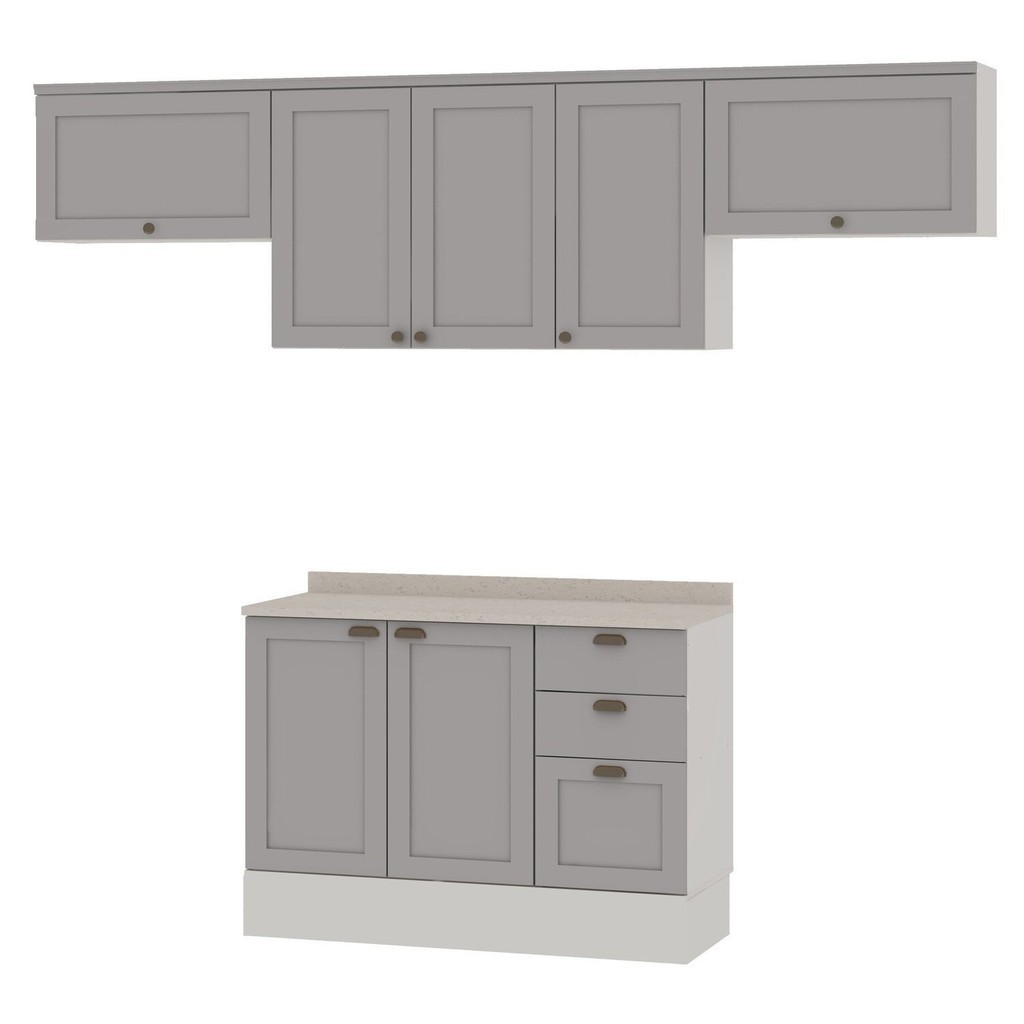 Cozinha Modulada 4 Peças 1 Balcão com Tampo 2 Aéreos 100% Mdf Branco/Fendi
