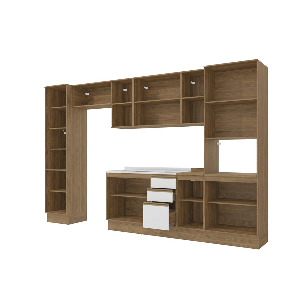 Cozinha Modulada Celeste Kappesberg 100% MDF Nogueira/Branco 8 Peças