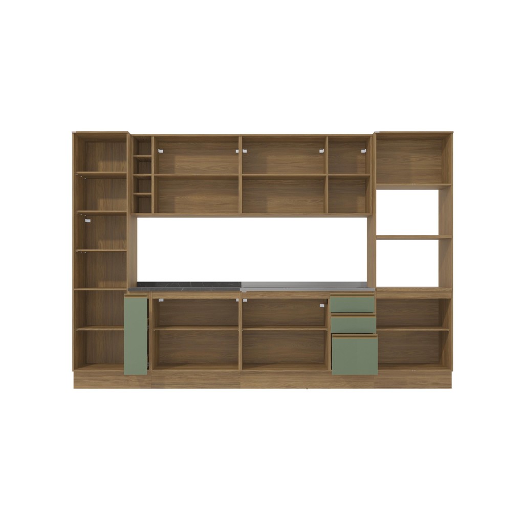 Cozinha Modulada Celeste Kappesberg 100% MDF Nogueira/Verde 9 Peças