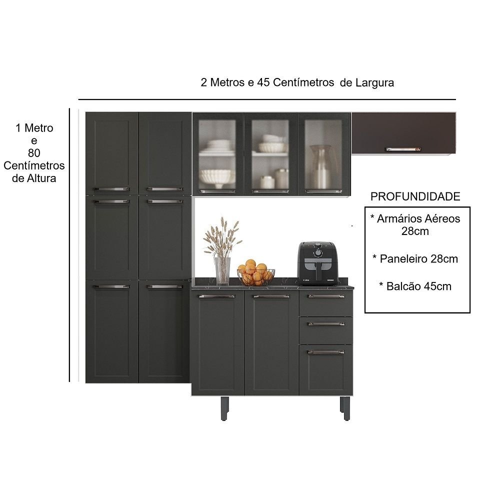 Cozinha Modulada Compacta em Aço 4 Peças 13 Portas Sendo 3 com Vidro 2 Gavetas Florença Itatiaia Branco/Grafite