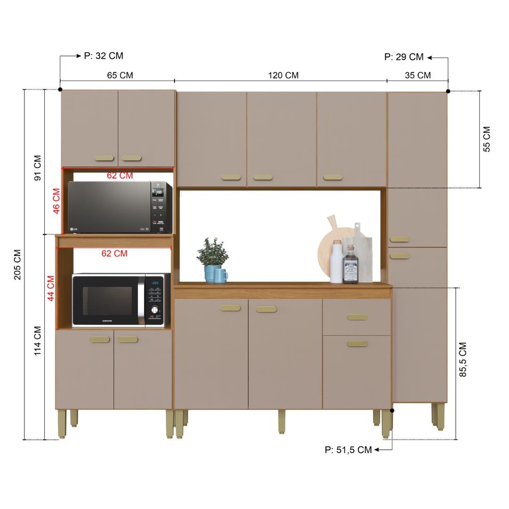 Beleza, Funcionalidade e Flexibilidade para sua Cozinha A Cozinha Mariana da Fidelitá é a escolha perfeita para quem busca elegância e praticidade no dia a dia. Com design moderno e linhas delicadas, essa linha se destaca pelo acabamento sofisticado em pintura UV-ultravioleta, que oferece brilho duradouro e alta resistência. Composta por módulos avulsos, você pode montar sua cozinha conforme o espaço disponível e suas necessidades. Os compartimentos internos com prateleiras e divisórias proporcionam excelente organização para utensílios, mantimentos e eletros. A estrutura é fabricada em MDP 15mm, com dobradiças e corrediças metálicas, puxadores em ABS e pés plásticos quadrados com regulagem de altura, garantindo durabilidade e acabamento de qualidade. Medidas Totais do Conjunto: - Altura: 205cm - Largura: 220cm - Profundidade: 53cm (balcões) | 29cm (aéreos) Itens Inclusos: - 01 Torre Quente 65cm – 4 portas e 2 nichos para forno ou micro-ondas - 01 Aéreo 120cm – 3 portas - 01 Balcão 120cm com tampo – 3 portas e 1 gaveta - 01 Paneleiro 35cm – 2 portas Destaques do Produto: - Pintura UV-ultravioleta com acabamento refinado e maior resistência - Módulos avulsos: flexibilidade para diferentes composições - Prateleiras e divisórias internas para ótima organização - Estrutura em MDP 15mm de alta durabilidade - Corrediças e dobradiças metálicas - Puxadores em ABS resistentes e anatômicos - Pés com regulagem de altura para nivelamento perfeito Informações Importantes: - Montagem: Produto enviado desmontado com manual de instalação e ferragens inclusas. A Fidelitá Móveis não realiza o serviço de montagem. - Garantia: 6 meses contra defeitos de fabricação. - Imagem meramente ilustrativa.