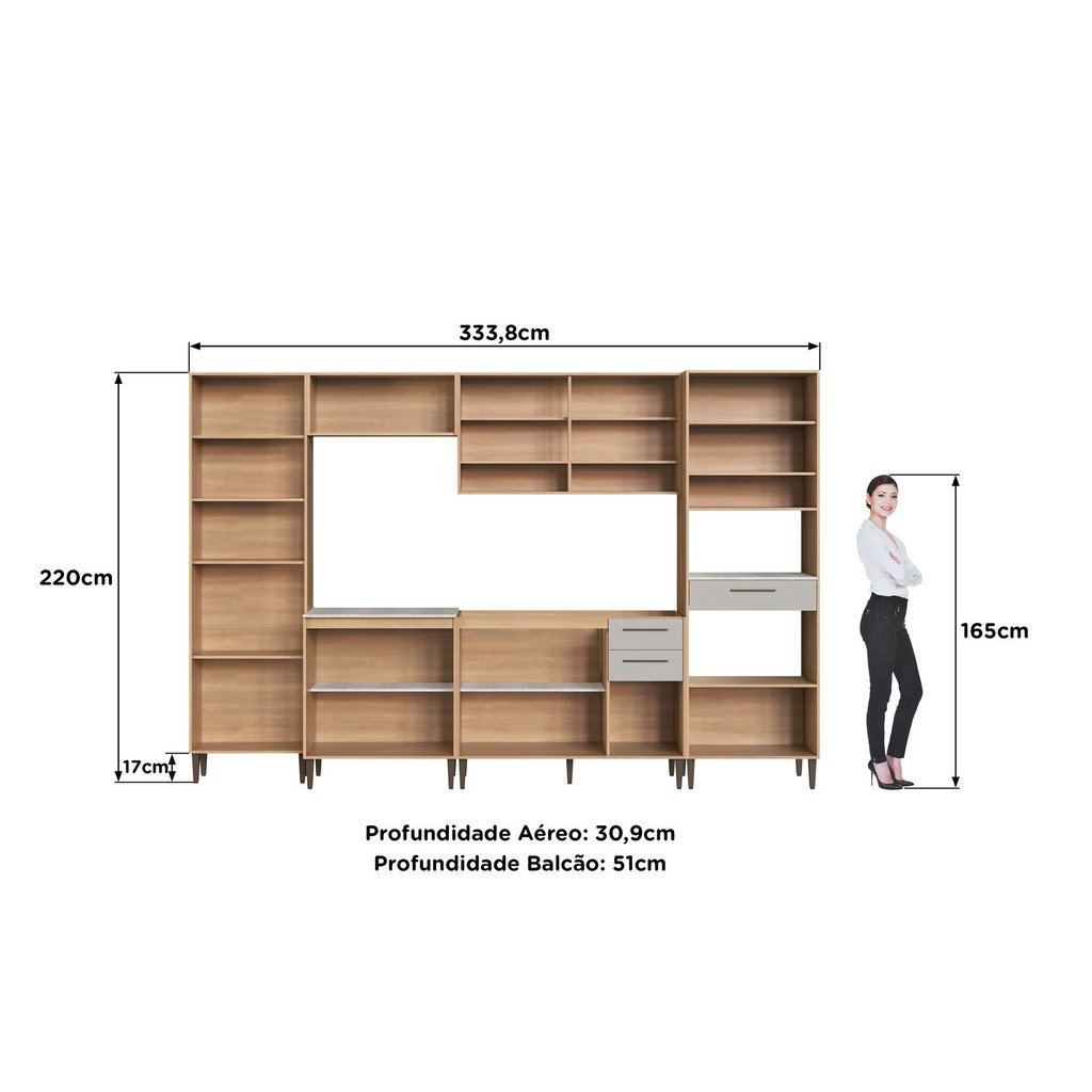 Cozinha Modulada Completa 6 Peças com Cristaleira 12 Portas 3 Gavetas Jade 12 Portas