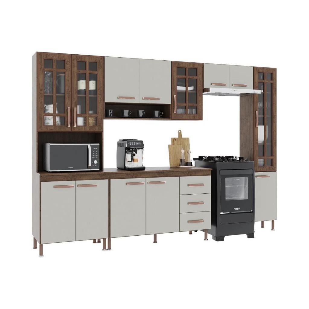 Cozinha Modulada Completa Fidelitá Lisboa 5 Peças 295cm 12 Portas 3 Gavetas Com Tampo Noce/Off-White