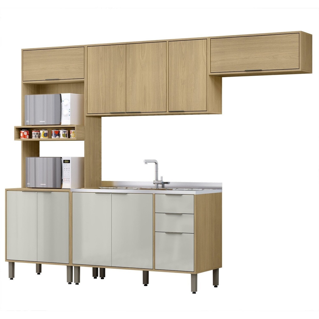 A Cozinha Modulada Glória 4 Peças com Aéreo 1200 3 portas e Torre 2 Fornos da MX Móveis possui nichos ótimos para sua organização. Agora você pode guardar todos os seus utensílios de cozinha para desfrutar um jantar com a família. O acabamento externo e interno, é de total qualidade, utilizando o melhor material, para que seja feito um excelente trabalho, visando também, nosso maior bem, a natureza, com processo ecologicamente corretos. Estilo: Moderno Modular: Sim Peso (kg): 106.8 Garantia: 03 Meses Altura (cm): 215 Acabamento: Pintura Texturizada UV Largura (cm): 270 Possui Pés: Sim Possui Vidro: Sim Possui Portas: Sim Tipo de Porta: Misto (Bater e Basculante) Altura dos Pés: 15 Pés Reguláveis: Sim Possui Gavetas: Sim Possui Rodízio: Não Suporta Até (kg): 60 Acompanha Tampo: Não Profundidade (cm): 51.6 Escala de Brilho: Semi-Brilho Gaveta com Chave: Não Material dos Pés: ABS Material da Porta: MDP Origem do Produto: Nacional Ambiente Principal: Cozinha Balcão Suporta Pia: Sim Material da Gaveta: MDP Material Principal: MDP Possui Prateleiras: Sim Acabamento da Porta: Pintura Texturizada UV Quantidade de Peças: 4 Sapatas Niveladoras: Não Acabamento da Gaveta: Pintura Texturizada UV Balcão Acompanha Pia: Não Material da Corrediça: Alumínio Material da Prateleira: MDP Peso Máximo por Gaveta: 3 Acabamento da Prateleira: Pintura Texturizada UV Tipo de Puxador da Porta: Externo Escala de Brilho da Porta: Semi-Brilho Tipo de Puxador da Gaveta: Externo Escala de Brilho da Gaveta: Semi-Brilho Peso Máximo por Prateleira: 4 Tipo de Armário de Cozinha: Cozinha Compacta Possui Recorte para Cooktop: Não Tipo de Corrediça da Gaveta: Metálica Telescópica Material do Puxador da Porta: ABS Material do Puxador da Gaveta: Alumínio Escala de Brilho da Prateleira: Semi-Brilho Medida de Cada Item (A x L x P) (novo): Torre 2 fornos 210,5x70x51,6cm; Aereo 31,5x80x30cm; Balcão 81x120x51,6cm; Aereo 1200 63x120x30cm; Material da Dobradiça/Corrediça da Porta: Metálica Marca: MX Móveis Cor Interna: Ártico Cor: Castanho/Off White Cor do Produto: Castanho/Off White Itens Inclusos: 1 Torre 2 fornos , 1 Aéreo 80cm, 1 Aéreo 1200, 1 Balcão 1200, manual, ferragens Cor Predominante: Bege Linha ou Coleção: Glória Quantidade de Prateleiras: 12 Prateleiras Tamanho Indicado da Pia (L x C): 120x51,6cm Quantidade de Gavetas: 02 Gavetas Quantidade do Produto: 4 Tamanho Indicado do Tampo (L x P): 120x51,6cm