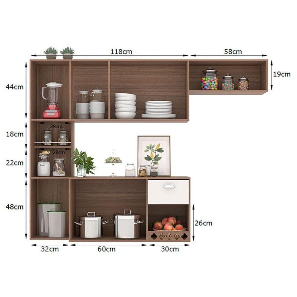 Cozinha Suspensa Mila Carvalho Oak Off White - Poliman
