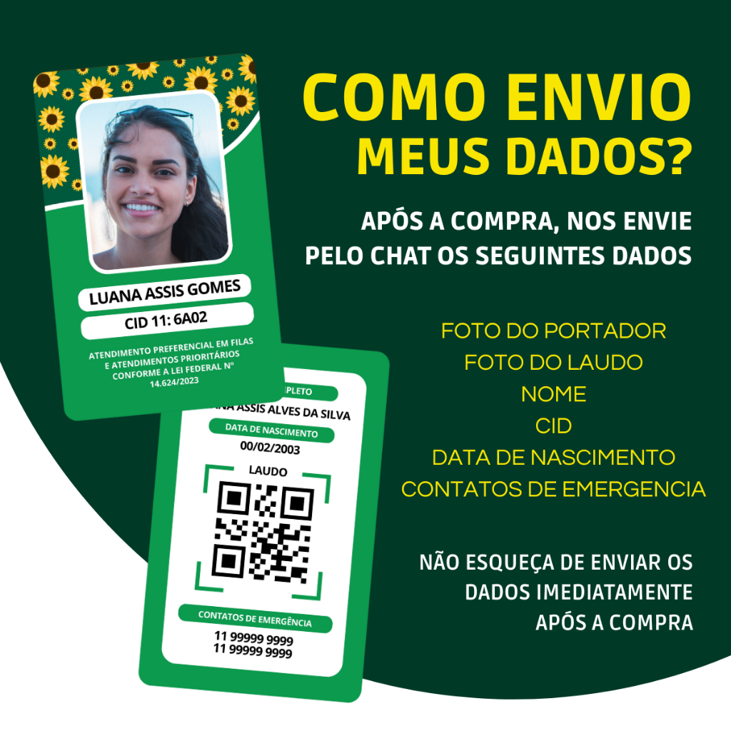Crachá de Identificação Girassol – Deficiência Oculta | PVC Personalizado + Porta - Crachá Rígido Conscientização, empatia e inclusão em um único acessório. Este crachá com o símbolo do girassol é uma forma discreta, mas eficaz, de sinalizar que o usuário possui uma condição invisível, como autismo (TEA), TDAH, fibromialgia, epilepsia, ansiedade severa, entre outras. Fabricado em PVC durável, resistente e à prova d’água, o crachá é entregue com porta crachá rígido incluso, pronto para uso. ✅ Detalhes do Produto: 📌 Material: PVC de alta resistência (semelhante a cartão bancário) 💧 À prova d’água e fácil de limpar 📐 Tamanho padrão: 8,5cm x 5,4cm 👁️🗨️ Design com símbolos visuais inclusivos e informativos 🧾 Informações personalizadas: Nome, CID, contatos de emergência, etc. 🔒 Acompanha porta crachá plástico rígido – proteção garantida 🧩 Modelo para pessoas com Deficiência Oculta – Ideal para facilitar o entendimento em ambientes públicos, escolas, clínicas e mais. ✅ Para garantir a produção correta e rápida do seu crachá, é necessário enviar os seguintes dados em até 24 horas após a compra: - Nome completo - CID - Data de nascimento - Contatos de emergência - Foto nítida do rosto - Foto do laudo médico ⚠️ Caso os dados não sejam enviados dentro do prazo de 24 hora após a compra, enviaremos o crachá em branco para preenchimento manual. 💡 BENEFÍCIOS DO CRACHÁ DE DEFICIENCIA OCULTA: Promove inclusão e respeito em ambientes públicos Facilita o reconhecimento da Deficiência Oculta em situações de emergência ou crise Ajuda profissionais e pessoas ao redor a adotarem uma abordagem mais paciente e empática Inclui dados de emergência para suporte imediato Ideal para uso em escolas, clínicas, transporte público, eventos e mais Material resistente, prático e com visual discreto e informativo 📦 Processo de Compra e Produção: 1. Finalize sua compra normalmente. 2. Envie os dados obrigatórios pelo chat da Shopee em até 24h. 3. Após o recebimento correto das informações, iniciaremos a personalização e produção. (até 7dias uteis) 4. Enviamos o produto com porta-crachá incluso, pronto para uso. ❤️ Um pequeno item que pode fazer uma grande diferença. Garanta agora o crachá de identificação personalizado e proporcione mais segurança e tranquilidade a quem você ama. Clique em "Comprar Agora" e envie os dados em até 24 horas!