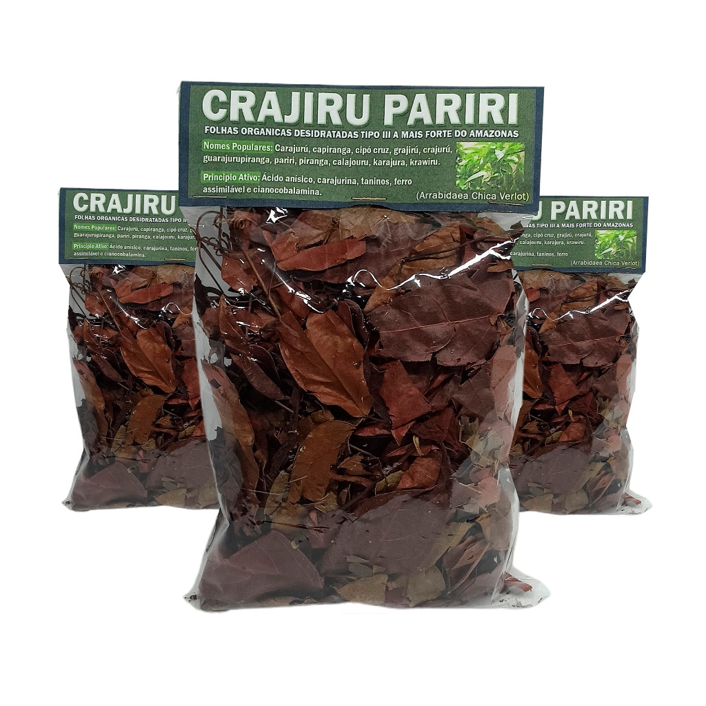 Crajiru Super Chá - 30 gr Amazonico Crajiru Pariri Original Amazonico do Tipo morfologico 3 | folhas largas Pacote c/30 gr de folhas secas e organicas (Arrebidaea chica Verlot - Folhas) O que é folhas organicas? Significa que foi cultivado sem a adição de insumos químicos, fertilizantes ou pesticidas. O R I G I N A L "RECEBERA 1 PACOTE COM 30 GR" Crajiru em Folhas SECAS p/chá, Nosso crajiru é seco na sombra para preservar todas as caracteristicas da planta para um bom resultado pois o aspecto da folha seca precisa estar na cor "marrom avermelhada" pois é o ideal para fazer o chá, se a folha estiver com aspecto seca e verde significa que foi esposta ao calor excessivo do sol ou forno e perde 70% das propriendades e se tiver com a cor verde tipo fresca contem 80% de agua nas folhas e a cada 100 gr depois de secas se tornan 20 gr. Nosso crajiru é colhido e seco no Amazonas onde é o hatitat da planta e distribuimos para todo Brasil e alguns paises. ((GARANTO SUA ENTREGA OU SEU DINHEIRO DE VOLTA!)) Boas Compras *****