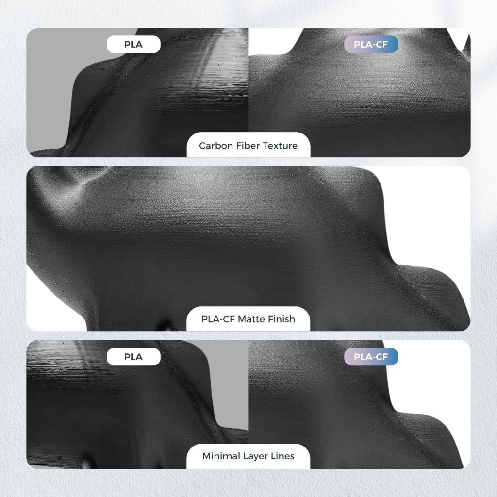 About this item UP to 300MM/S HIGH-SPEED PRINTING - The Creality Carbon Fiber Filament 1.75mm can print at a speed of up to 300 mm per second without compromising the printing effect. In addition, it can support high-speed and normal-speed printing at the same time, and the printing effect is very delicate HIGH STRENGTH and LAYER ADHESION - Perfect balance of strength, adhesion, and speed Creality PLA Carbon Fiber possesses 30% higher mechanical properties than PLA in terms of flexural strength, flexural modulus, and impact strength PRINTED MODEL DISPLAY - Carbon Fiber Filament with high strength and lightweight, is suitable for structural parts in more complicated working conditions, such as unmanned aerial vehicles, aircraft model joints, drives, etc APPLICABLE to VARIOUS MODELS - Hyper PLA-CF is compatible with all Creality closed and open 3D printers, and is widely compatible with most printers on the market, such as Creality 3D Printers/Ender 3D Printers,Fit for AnycubicPrinter/Fit for ElegooPrinter/Bambu/Ankermake/Prusa/Flashforge/Monoprice/FLSUN/Artillery/Qidi 3D Printers ETC Responsible after-sales service & Lifetime Technical Support - If you have any problems about Official Creality Hyper PLA Filament 1.75mm, Please feel free to get in touch with us through Amazon Message Center, we will quickly respond within 24 hours