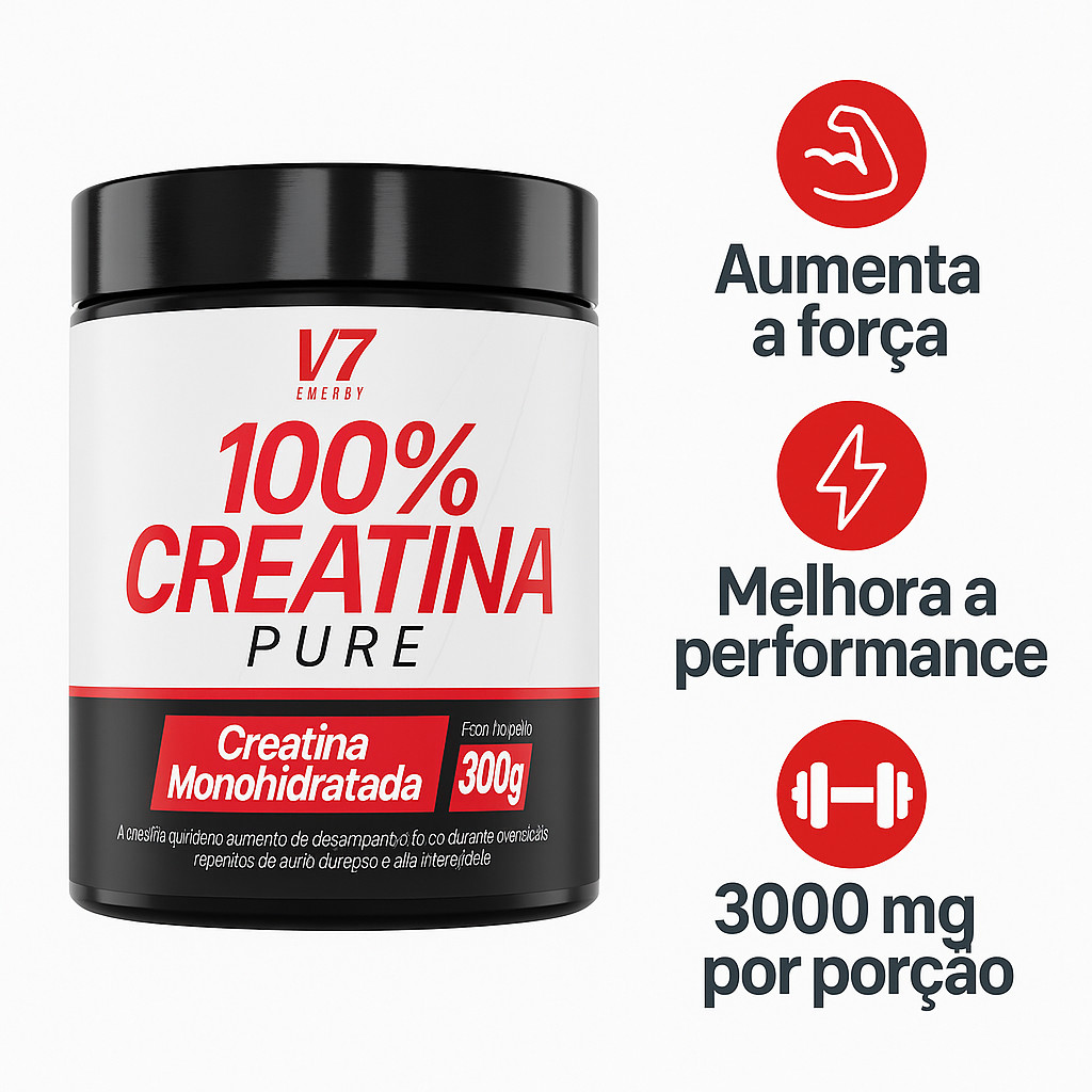 A Creatina 100% Pura V7 é um suplemento essencial para quem busca melhorar o desempenho físico, aumentar a força, resistência e promover o ganho de massa muscular. Sua fórmula é composta exclusivamente por creatina monohidratada de alta pureza, sem aditivos, garantindo máxima eficácia na reposição dos estoques de energia muscular durante os treinos de alta intensidade. Benefícios: ✅ Auxilia no aumento de força e potência muscular ✅ Melhora o desempenho em atividades de alta intensidade ✅ Contribui para o ganho de massa magra ✅ 100% pura – sem aditivos, corantes ou conservantes ✅ Alta biodisponibilidade e absorção ✅ Produto vegano e livre de glúten ℹ️ Ficha Técnica: ✅ Produto: Creatina Monohidratada ✅ Marca: V7 ✅ Conteúdo: 300g ✅ Ingredientes: Creatina monohidratada pura ✅ Indicado para: Atletas e praticantes de atividade física ✅ Não contém glúten ✅ Livre de lactose e ingredientes de origem animal ✅ Embalagem: Pote plástico com tampa rosqueável