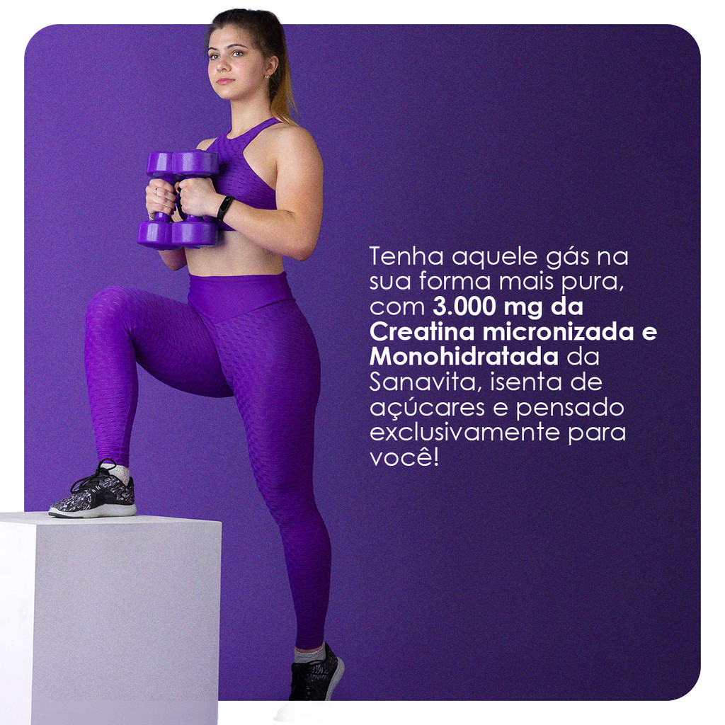 INFORMAÇÕES DE DESTAQUE Creatina Monohidratada Alta pureza e absorção Zero calorias Sem lactose e glúten Produto vegano DESCRIÇÃO A Creatina da Sanavita é um suplemento em pó à base de creatina monohidratada 100% pura e micronizada. Sua formulação é indicada para complementar a ingestão deste nutriente em dietas específicas. A creatina é uma substância naturalmente presente no corpo humano e também encontrada em alimentos. A suplementação é comum em rotinas com treinos intensos, sendo utilizada conforme orientação profissional. Produto sem ingredientes de origem animal, indicado para dietas veganas ou vegetarianas. COMPOSIÇÃO Creatina monohidratada. NÃO CONTÉM GLÚTEN. ALÉRGICOS: PODE CONTER LEITE E SOJA. Pode conter traços desses ingredientes devido ao compartilhamento de equipamentos, embora sejam adotadas medidas rigorosas de controle e limpeza para evitar contaminação cruzada. SUGESTÃO DE USO Adicione 1 porção (conforme indicado na embalagem) em água ou outra bebida de sua preferência e misture até completa dissolução. O consumo deve ser orientado por profissional da saúde.