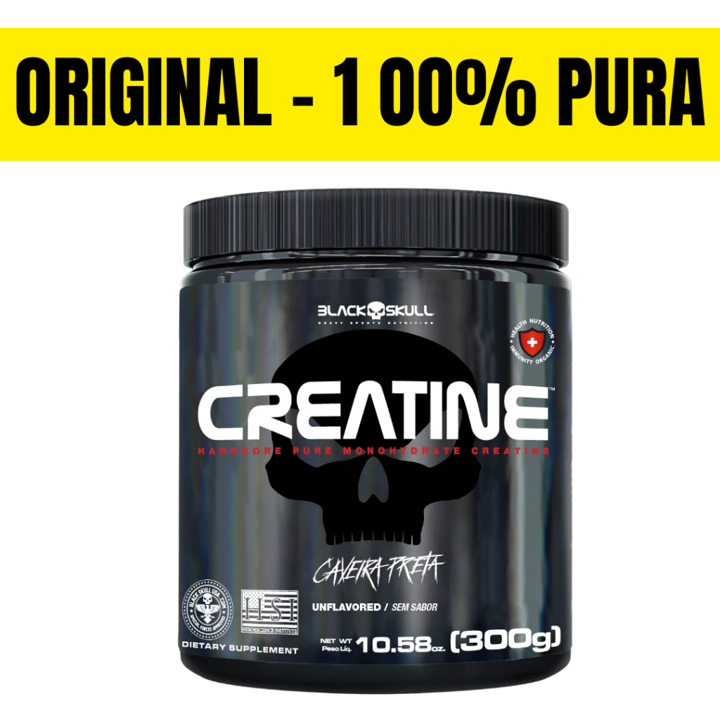 A creatina é um composto naturalmente sintetizado pelos rins, fígado e pâncreas e armazenado, em grande parte, nas fibras musculares. Também é encontrada em alimentos como carnes e peixes, sendo que 1kg de carne vermelha contém aproximadamente 5g de creatina. Sua principal função no organismo é atuar como uma fonte de energia para os músculos durante atividades de alta intensidade e curta duração. A creatina monohidratada é amplamente estudada pela ciência, com evidências de seus benefícios não apenas no desempenho esportivo, mas também em efeitos anti-inflamatórios e na proteção da saúde cerebral. Estudos apontam sua contribuição para funções neuroprotetoras e a redução da demanda de oxigênio no cérebro, promovendo bem-estar e desempenho cognitivo. CREATINE™ da BLACKSKULL USA™ é um suplemento composto 100% por creatina monohidratada pura, desenvolvido para otimizar sua performance física. Ele ajuda a aumentar a energia durante exercícios intensos, contribui para o ganho de massa muscular e melhora o desempenho geral nos treinos. Modo de consumo Dissolva 1/2 colher de chá (aproximadamente 3g) de Creatine em 150ml de água e consuma uma vez ao dia, preferencialmente sob orientação de um profissional da saúde. Dicas importantes: Associe o uso do produto a uma alimentação equilibrada e à prática de exercícios físicos. Indicado para adultos com mais de 19 anos. Consumir imediatamente após o preparo. Armazene em local seco, longe da luz direta, e consuma em até 30 dias após abrir o lacre. Ingredientes Creatina Monohidratada. NÃO CONTÉM GLÚTEN.