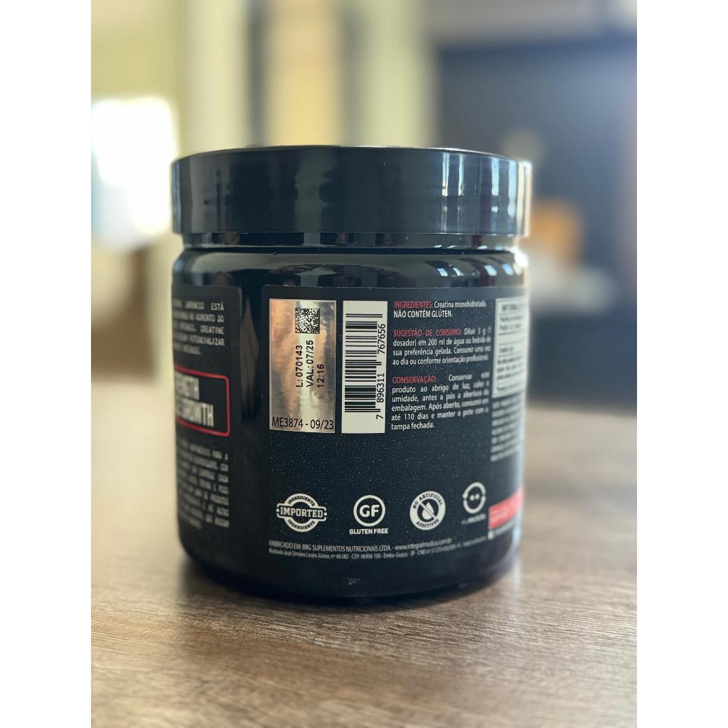 Ingredientes Creatina monohidratada. Aviso: Não contêm quantidades significativas de valor energético, carboidratos, proteínas, gorduras totais, gorduras saturadas, gorduras trans, fibra alimentar e sódio. (*) % Valor Diário não estabelecido./ Does not contain significant amount of calories, carbohydrate, protein, total fat, saturated fat, trans fat, dietary fiber and sodium. (*) % Daily Values no defined. APRESENTAÇÃO: Embalagem disponível: pote contendo suplemento em forma de pó. Peso Líquido: 300 g [NET WT. 0,66 LBS] Produto classificado como: SUPLEMENTO ALIMENTAR DE CREATINA EM PÓ. SUGESTÃO DE CONSUMO DE CREATINA: Diluir 3 g (1 dosador) em bebida de sua preferência. Consumir uma vez ao dia. CONSERVAR CREATINA MONOHIDRATA EM PÓ? Conservar este produto ao abrigo de luz, calor e umidade, antes e após a abertura da embalagem. Após aberto, consumir em até 126 dias e manter o pote com a tampa fechada. ESTE PRODUTO NÃO É UM MEDICAMENTO. NÃO EXCEDER A RECOMENDAÇÃO DIÁRIA DE CONSUMO INDICADA NA EMBALAGEM. MANTENHA FORA DO ALCANCE DE CRIANÇAS. ESTE PRODUTO NÃO DEVE SER CONSUMIDO POR GESTANTES, LACTANTES E CRIANÇAS. ESTE PRODUTO É RECOMENDADO PARA ADULTOS ACIMA DE 19 ANOS.