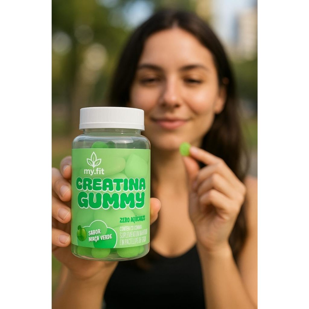 Creatina Gummy, Sabor Maça Verde (60 Gomas) 3g de Creatina por Dose, Zero Açúcar - My Fit