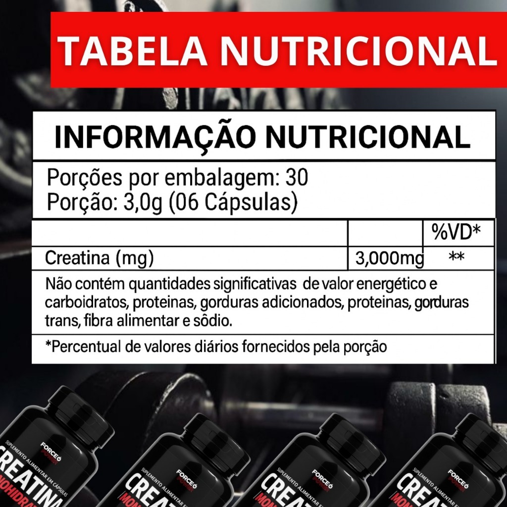 CREATINA MONOHIDRATADA Cada Pote Contém 120 cápsulas _____________________ SUGESTÃO DE USO: Ingerir 06 (seis) cápsulas ao dia. 02 cápsulas ( após o café da manhã ) 02 cápsulas ( após o almoço ) 02 cápsulas ( após o jantar ) PRODUTO PARA MAIORES DE 19 ANOS ____________________ INGREDIENTES: Creatina Monohidratada. Composição da cápsula: Gelatina e Umectante Glicerina. NÃO CONTÉM GLÚTEN ___________________ ADVERTÊNCIAS: “ESTE PRODUTO NÃO É UM MEDICAMENTO” “ESTE PRODUTO É UM SUPLEMENTO ALIMENTAR” “USO ADULTO.” “MANTENHA FORA DO ALCANCE DE CRIANÇAS” “NÃO EXCEDER A RECOMENDAÇÃO DIÁRIA DE CONSUMO INDICADA NA EMBALAGEM” _________________ Dê adeus ao incômodo das lojas físicas e dê as boas-vindas a uma experiência de compra mais fácil, rápida e conveniente. Faça parte da revolução das compras online e experimente a diferença que a conveniência faz na sua vida. Seu tempo é valioso, invista onde realmente importa. Compre online e relaxe enquanto cuidamos do resto. Entrega Rápida Pagamento Seguro Conforto Garantido.