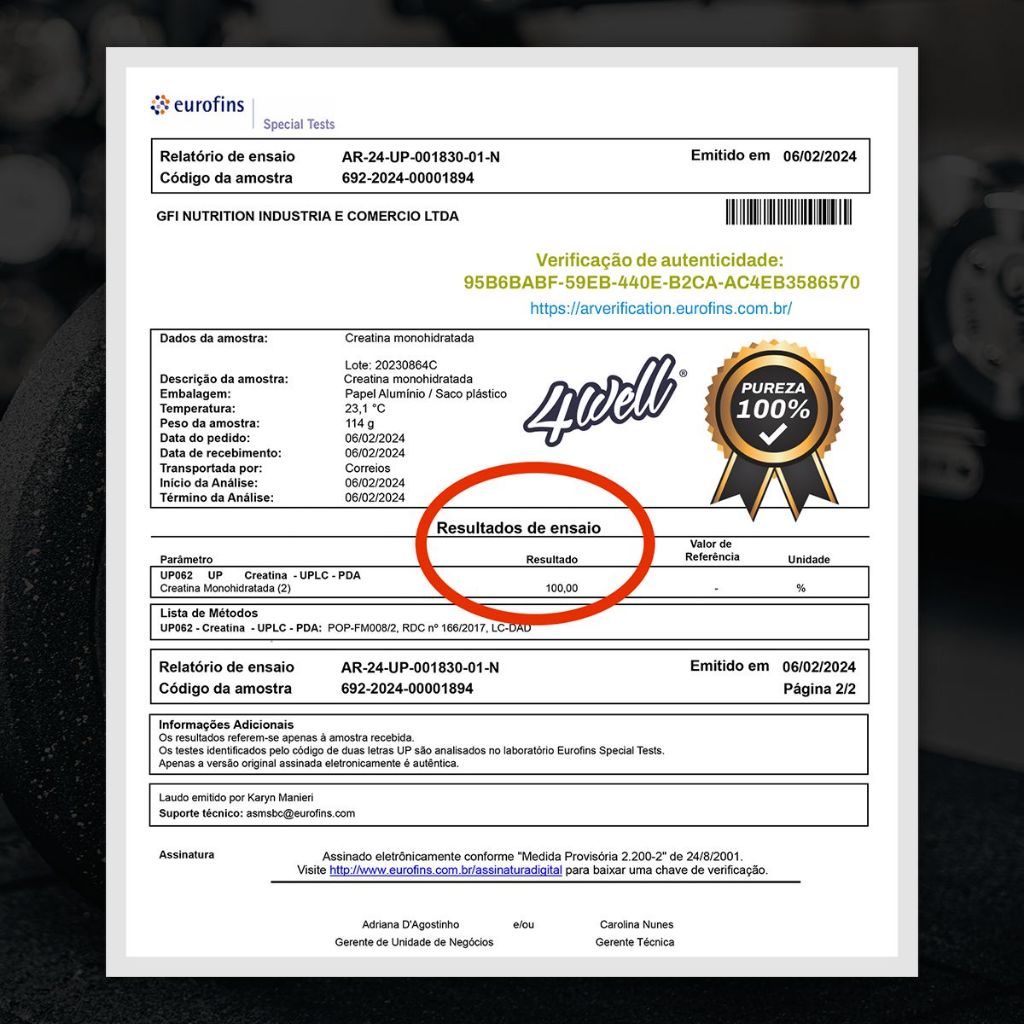 Creatina Monohidratada 300g Pote - 100% Pura - Importada - 4well - Sabor Natural