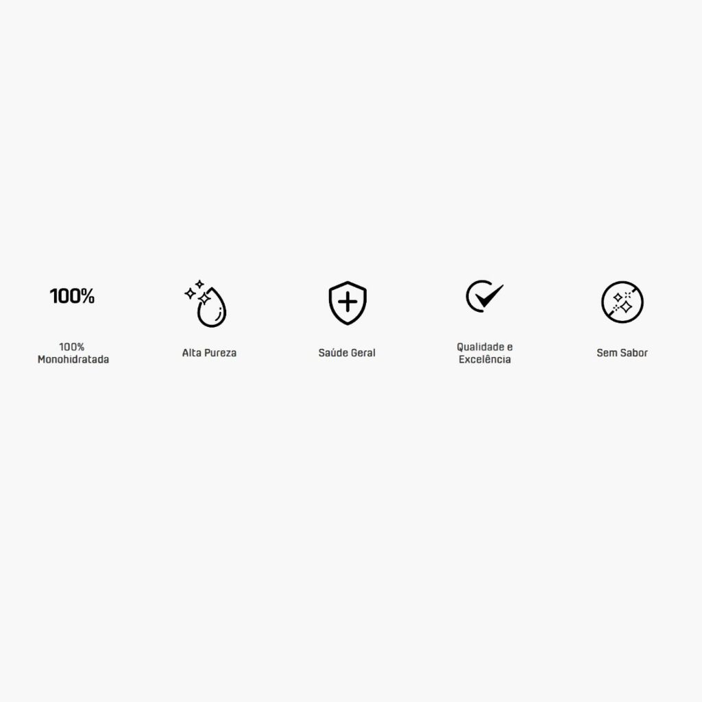 100% Monohidratada. Elaborada sob rigoroso controle de qualidade e excelência, para garantir a procedência e origem nobre do produto, visando o ganho de força e massa muscular. A recomendação é de 3g (½ dose) por dia, ou conforme orientação do seu médico/nutricionista. É indicado o uso diário para que o efeito seja eficiente.
