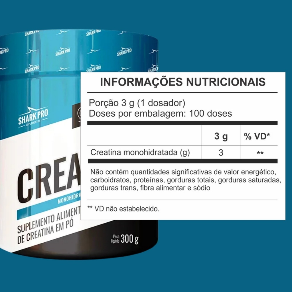 Creatina Monohidratada Shark Pro Nossa Creatina Monohidratada Shark Pro é a escolha ideal para impulsionar seu desempenho atlético e atingir novos patamares nos treinos. Esta creatina em pó monohidratada é perfeita para quem busca resultados eficazes e uma experiência saborosa. Benefícios da Creatina Monohidratada Shark Pro: - Aumento de Força: Proporciona a força necessária para treinos mais intensos. - Melhora da Resistência: Ajuda a prolongar a resistência durante exercícios. - Recuperação Rápida: Facilita a recuperação muscular, permitindo um retorno mais rápido aos treinos. - Variedade de Sabores: Disponível nos sabores limão, uva, tangerina e sem sabor, você pode escolher a opção que mais lhe agrada, tornando sua suplementação ainda mais prazerosa. Modo de Preparo e Uso: - Preparação: Misture um dosador de creatina em 250 ml de água preferencialmente gelada. - Uso Recomendado: Utilize uma dose (3 g) uma vez ao dia, preferencialmente 30 minutos antes da atividade física ou conforme orientação profissional. - Potencialize seus treinos Com a Creatina Monohidratada Shark Pro, você tem o segredo para elevar seu desempenho e conquistar seus objetivos com energia e sabor. Experimente hoje mesmo e leve seus treinos a um novo nível! Aviso Importante: Este produto não é um medicamento. Não exceder a recomendação diária de consumo indicada na embalagem. Mantenha fora do alcance de crianças. Este produto não deve ser consumido por gestantes, lactantes e crianças.