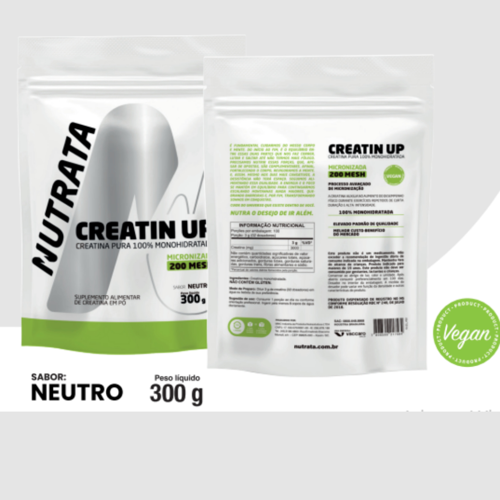 NUTRATA APRESENTA A Creatin Up é usada principalmente para aumentar força muscular e desempenho. Essa creatina é 100% monohidratada. Além disso, não possui conservantes ou aditivos em sua composição, garantindo maior pureza para o suplemento. Se você procura maior potência muscular para melhorar o desempenho do seu treino, essa é uma boa pedida. Além de possuir um elevado padrão de qualidade, é também o melhor custo-benefício do mercado. ------------------------------------------------------ O que é creatina monohidratada? ------------------------------------------------------ A creatina monohidratada é a fórmula cujos efeitos positivos são mais descritos e registrados na literatura científica. Ela pode ser consumida com diversos tipos de líquidos, como água, sucos, chás e outros. Por fim, é o melhor custo-benefício quando o assunto é creatina de qualidade. ------------------------------------------------------ Como tomar creatina? ------------------------------------------------------ Em relação a quantidade, procure um médico ou nutricionista para montar um plano alimentar adequado para o seu caso. Quanto ao uso, a creatina deve ser consumida todos os dias e em qualquer horário. Ou seja, mesmo nos dias que você não treina, precisa continuar suplementando. Uma ótima ideia é colocá-la junto a principal refeição do seu dia para otimizar a absorção da substância. Isso porque a creatina é melhor aproveitada quando consumida junto a carboidratos, bem como laranja, banana ou uva. ------------------------------------------------------ Sugestão e Indicação de Uso ------------------------------------------------------ É recomendado consumir 1 porção ao dia ou conforme orientação profissional; Ingerir pelo menos 8 copos de água diariamente. ------------------------------------------------------ Ingredientes ------------------------------------------------------ Creatina monohidratada. NÃO CONTÉM GLÚTEN.