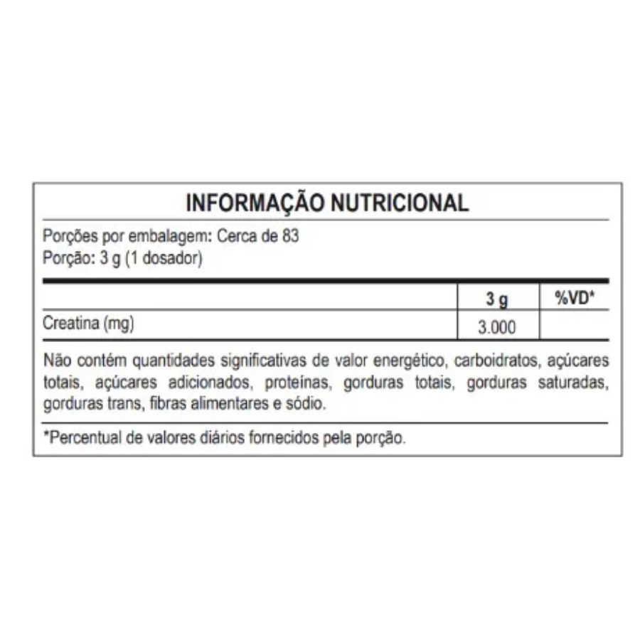 Sobre o Produto A Creatina da Linha Dino , traz a creatina na concentração e pureza da exclusiva tecnologia alemã Creapure®. A creatina auxilia no aumento do desempenho físico durante exercícios repetidos de curta duração e alta intensidade, além de ajudar a complementar os estoques endógenos de creatina. Recomendação de uso Consumir uma porção ao dia. Ingredientes Creatina monohidratada. NÃO CONTÉM GLÚTEN Benefícios • MONOHIDRATADA • PURA Modo de Preparo Adicione o pó até a marcação 3g no dosador* e diluir em água ou sua bebida preferida. *A quantidade da porção no dosador pode variar em função da densidade e outras características do produto. Advertências “ESTE PRODUTO NÃO É UM MEDICAMENTO”. “NÃO EXCEDER A RECOMENDAÇÃO DIÁRIA DE CONSUMO INDICADA NA EMBALAGEM”. “MANTENHA FORA DO ALCANCE DE CRIANÇAS”. “ESTE PRODUTO NÃO DEVE SER CONSUMIDO POR GESTANTES, LACTANTES E CRIANÇAS Alergênicos PODE CONTER LEITE, OVO E SOJA Tamanho 250g