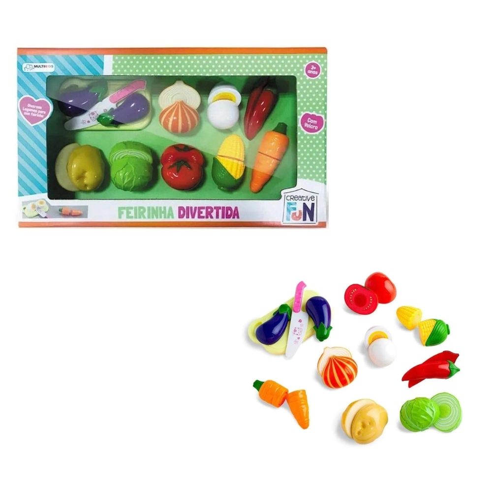 Caracteristicas: - Marca:Multikids - Modelo:BR1109 * Imagens meramente Ilustrativas Especificações: - Idade Recomendada: 3+ anos - Material: Plástico - 8 Legumes Com fita que gruda - Cor Principal: Diversas - Contém: 1 ovo, 1 cenoura, 1 batata, 1 milho, 1 tomate, 1 cebola, 1 pimenta, 1 brócolis, 1 berinjela, 1 faca, 1 tabua de cortar legumes * Atenção, uso para brincadeira, não para refeição ! Observação: - As cores podem variar entre as imagens mostradas acima e o produto - Imagens meramente ilustrativas - Ao apresentar sintomas de alergia, pare o uso e consulte seu médico Conteúdo da embalagem: - 1x Ovo - 1x Cenoura - 1x Batata - 1x Milho - 1x Tomate - 1x Cebola - 1x Pimenta - 1x Brócolis - 1x Berinjela - 1x Faca - 1x Tábua de cortar legumes