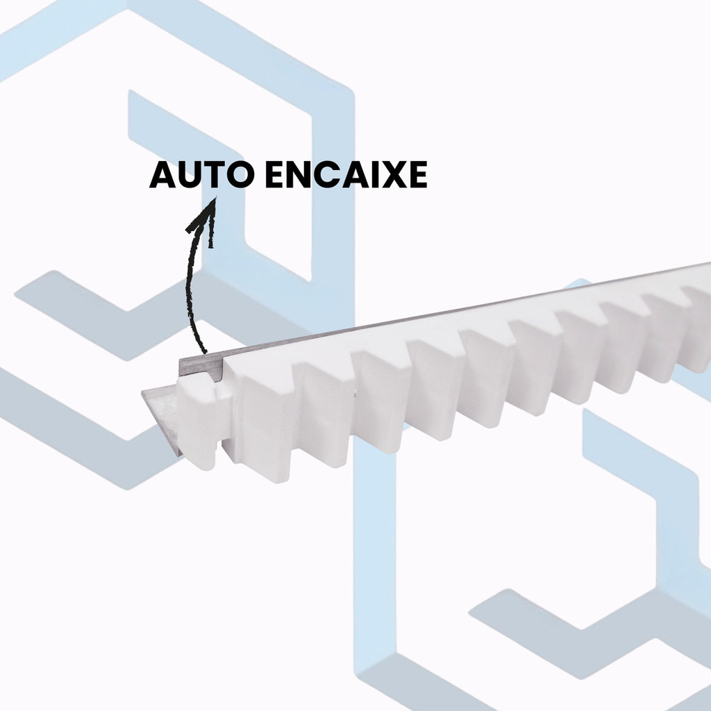 Cremalheira Ferro 3m Branco Auto Encaixe Universal Com as Cremalheiras de Ferro Giltar a instalação fica mais segura e prática, porque seus gomos são construídos para resistência de tração contínua sendo acoplados a régua de ferro tratado com galvanização eletrolítica zincada (retarda aparecimento de ferrugens em ações do tempo) Com encaixes práticos a instalação ganha no tempo, os gomos são disponíveis nas cores branca e preta com a possibilidade de escolha da espessura do ferro (1,25mm a 2mm) pelo cliente. Cremalheira consiste em uma chapa de metal galvanizado com dentes feito em nylon super resistente. Ela pode será fixada no Portão para que o Motor ao girar sua engrenagem no dentes de nylon dela, fará com que o Portão também se movimente, tanto abrindo como fechando. Chapa Metal Galvanizado. Espessura de 1,25 mm chapa galvanizada Dentes Branco Super Resistentes. CONTEÚDO DA EMBALAGEM 3 Gomo de 1m da cremalheira de ferro Branco CARACTERÍSTICAS . Gomos produzidos em plástico propileno(PP); . Cantoneira produzida em ferro galvanizado de alta qualidade; . Compatível com modelos de motores residenciais de outras marcas, desde que tenham ENGRENAGEM MÓDULO 4.