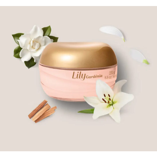 | Creme Acetinado Hidratante Desodorante Corporal Lily Gardénia 250g este produto | R$ 129,90 | — | 4.9/5 | 16 |