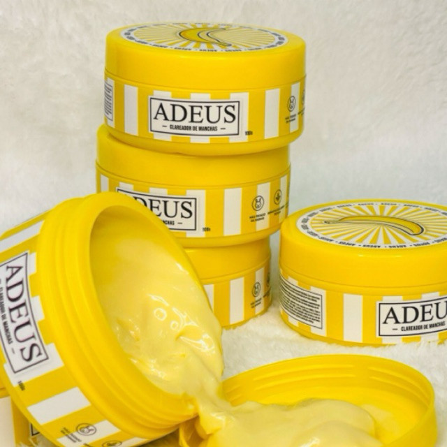 CREME ADEUS MANCHAS - CLAREADOR DE BANANA (100g) Um clareador facial e corporal criado para mulheres que querem uniformizar a cor da pele em áreas como axilas, virilhas, joelhos, cotovelos e também na região íntima. Com extrato de banana e ativos clareadores potentes, ele trata sem agredir, devolvendo o tom natural e a autoestima. Um cuidado diário, sensual e eficaz, feito para quem não quer mais esconder nada. DIFERENCIAIS QUE SE DESTACAM; Tecnologia bioativa da banana: fórmula natural, hidrata e suaviza. Múltiplas áreas de aplicação: ideal para quem busca uniformizar tons em regiões específicas com escurecimento. Qualidade certificada: Quantidade disponível no pote 100g, padrão ideal para uso contínuo. USO VERSÁTIL E EFICIENTE; Indicado para mulheres que querem melhorar o tom da pele nessas áreas. Possui textura leve, fácil de espalhar, ideal para uso diário tanto no rosto quanto no corpo. MODO DE USO SURGERIDO; 1- Limpar e secar a região desejada. 2- Aplicar uma pequena quantidade do creme e massagear até completa absorção. 3- Usar diariamente, preferencialmente à noite. 4- Complemente com hidratante ou protetor solar para melhores resultados. CUIDADOS IMPORTENTES Apenas para uso externo Não aplicar sobre pele irritada ou lesionada Em caso de sensibilidade, interrompa o uso Guardar fora do alcance de crianças GARANTIA: 30 DIAS Garantia de fábrica: 30 dias
