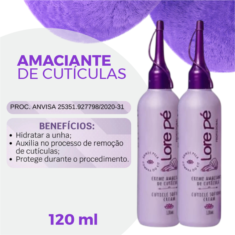 Creme Amaciante de Cutículas Lore Pé – 120ml O Amaciante de Cutículas Lore Pé facilita a remoção das cutículas enquanto hidrata e melhora o aspecto das unhas. Indicado para cuidados profissionais e domésticos. ✅ Benefícios • Amolece as cutículas rapidamente • Facilita a remoção sem agredir a pele • Hidrata unhas e cutículas ressecadas • Melhora o aspecto das unhas • Dermatologicamente testado • Não testado em animais 📌 Modo de Usar Aplicar o produto sobre as cutículas Aguardar alguns minutos para agir Remover as cutículas com facilidade Após a aplicação, as cutículas ficam macias, hidratadas e prontas para remoção. ❓ Dúvidas? Chame no chat — estamos aqui para ajudar