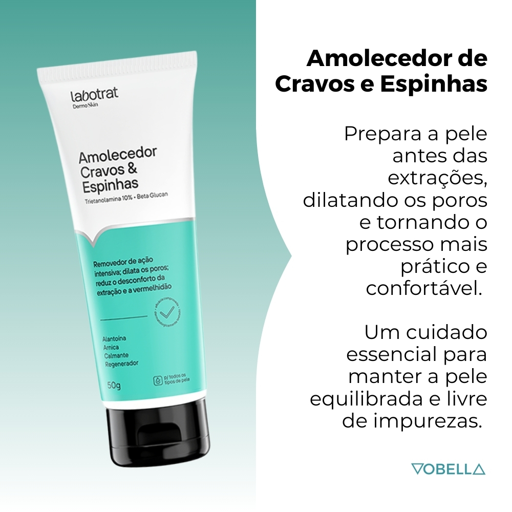 O Creme Amolecedor de Cravos e Espinhas Labotrat foi desenvolvido para preparar a pele antes das extrações, dilatando os poros e tornando o processo mais prático e confortável. Um cuidado essencial para manter a pele equilibrada e livre de impurezas. ATENÇÃO: Antes de finalizar a compra, por favor selecionar a quantidade. Sobre o produto: - Dermatologicamente testado. - Não testado em animais. - Ativos: Trietanolamina, Beta Glucan, Alantoína e Arnica. Indicado para: - Todos os tipos de pele. Modo de uso: - Aplique uma quantidade generosa sobre a pele limpa e seca. - Deixe agir de 10 a 15 minutos. - Retire o excesso e realize as extrações. - Pode ser associado ao uso de calor (máscara térmica ou vapor de ozônio). - Não é necessário algodão para aplicação. Com o Creme Amolecedor de Cravos e Espinhas Labotrat, você conquista uma pele mais limpa, uniforme e saudável com muito mais praticidade. Surgiu alguma dúvida? Entre em contato com a gente! Boas Compras :)