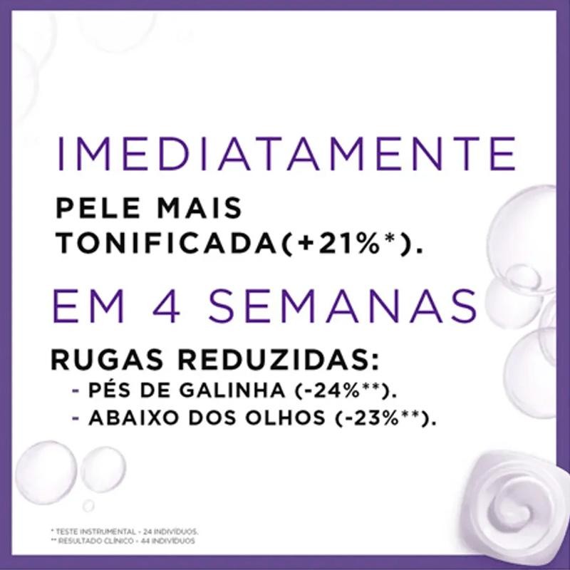 O novo Revitalift Hialurônico Cuidado Intenso para os olhos com Ácido Hialurônico de LOréal Paris é um creme para o contorno dos olhos com ação antirrugas. Sua fórmula hidrata intensamente a pele por 24h prevenindo rugas e linhas de expressão. Garante um rosto rejuvenescido e olhar mais desperto. Sua textura leve com Ácido Hialurônico é rapidamente absorvida preenchendo os vincos que surgem com o tempo ao redor dos olhos, além de iluminar a região, deixar a pele macia e tonificada. Tecnologia: Ácido Hialurônico: a gama completa Revitalift Hialurônico LOréal Paris é enriquecida com Ácido Hialurônico puro, substância produzida naturalmente pelo organismo e presente na pele, mas a sua produção decai com o passar dos anos. Possui um alto poder preenchedor, capaz de manter até 1000x o seu peso em água hidratando e preenchendo a pele, devolvendo a vitalidade e combatendo linhas de expressão. Não agride a pele, leve como água. Benefícios: - Imediatamente: pele mais tonificada (+21%) * - Em 2 semanas: rugas reduzidas - pés de galinha (-11%) Abaixo dos olhos (-9%) ** - Em 4 semanas: rugas reduzidas - pés de galinha (-24%) Abaixo dos olhos (-23%) ** * Teste instrumental - 24 indivíduos. ** Resultado clínico - 44 indivíduos