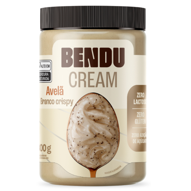 -------------------------- LINHA CREAMS -------------------------- Cremes sem açúcar, sem glúten e sem lactose: saúde com sabor real. Os cremes Bendu unem sabor surpreendente, textura cremosa e ingredientes de alta qualidade. Feitos para quem busca prazer consciente, eles oferecem nutrição equilibrada, saciedade e versatilidade no dia a dia. Perfeitos para quem quer viver bem, sem abrir mão do sabor. Explore todos os sabores e descubra o seu ritual preferido. Cremoso, crocante na medida e refinado por 8h para alcançar a textura perfeita. Zero lactose, zero adição de açúcares e zero glúten. -------------------------------- BOMBOM BRANCO -------------------------------- Ingredientes: Creme de avelã branco (Óleo de girassol, avelã, leite em pó zero lactose), bolacha em pedaços (farinha de arroz, leite em pó zero lactose, fécula de batata, amido de milho, óleo de girassol,cacau em pó, fermento bicarbonato de sódio), edulcorantes naturais (maltitol e estévia), fibra solúvel polidextrose, lecitina de soja e aroma idêntico ao natural. Não contém Glúten Não contém Lactose ALÉRGICOS: CONTÉM AVELÃ, DERIVADOS DE LEITE E SOJA. PODE CONTER: AMENDOIM, AMÊNDOAS E CASTANHA-DE-CAJU. ------------------------------------------ CREME DE AVELÃ CACAU ------------------------------------------ Ingredientes: Creme de avelã com Cacau (Óleo de girassol, avelã, leite em pó zero lactose, cacau em pó), endulcorantes naturais (maltitol e stévia), fibra solúvel polidextrose, lecitina de soja, aroma idêntico ao natural e sal. -------------------------------- DARK CHOCOLATE -------------------------------- Ingredientes: Creme de avelã com cacau black (Óleo de girassol, avelã, leite em pó zero lactose, cacau em pó black), biscoito triturado sabor cacau, edulcorantes naturais (maltitol e estévia), fibra solúvel polidextrose, lecitina de soja e aroma idêntico ao natural. Não contém Glúten Não contém Lactose ALÉRGICOS: CONTÉM AVELÃ, DERIVADOS DE LEITE E SOJA. PODE CONTER: AMENDOIM, AMÊNDOAS E CASTANHA-DE-CAJU.