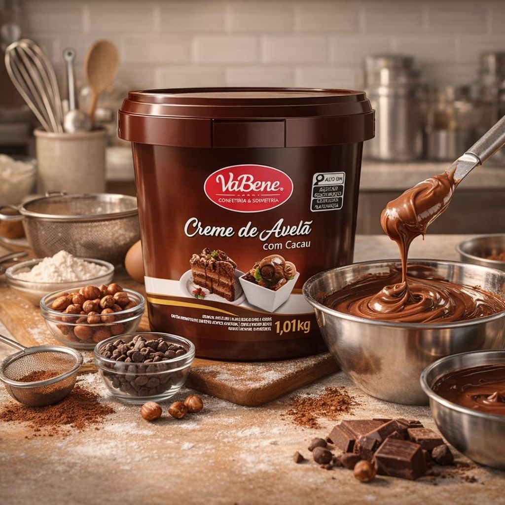 Sabor nobre e intenso de chocolate com avelã, com consistência cremosa e textura lisa. Ideal Para: Ideal para aplicação em receitas de confeitaria como recheio, cobertura ou decoração de bolos, tortas e pães. Em chocolateria é utilizado como inclusão em recheios de ovos de Páscoa, bombons, entre outros. Aviso Importante: Pode haver separação de fases, entre óleo e sólidos. Para melhor conservação, manter a embalagem devidamente fechada e em local seco, fresco e inodoro. Depois de aberto, consumir em até 30 dias. Data de fabricação e validade vide tampa. Ingredientes: Açúcar, gordura vegetal, avelã, soro de leite em pó, cacau em pó, aromatizantes e emulsificante lecitina de soja. ALÉRGICOS: CONTÉM AVELÃ E DERIVADOS DE LEITE E SOJA. PODE CONTER AMENDOIM, AMÊNDOA, CASTANHA-DE-CAJU, CASTANHA-DO-PARÁ E CEVADA. CONTÉM LACTOSE. CONTÉM GLÚTEN. Prazo de validade: 12 meses.