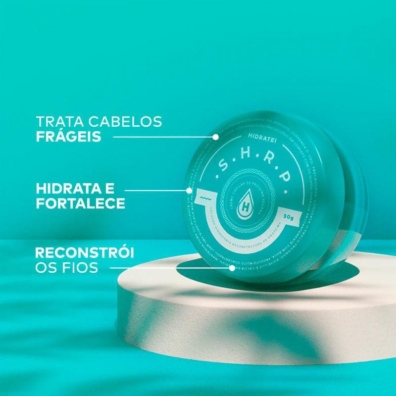 Creme Capilar S.H.R.P. Hidratei - Solução Hidratante Reconstrutora de Proteína O Creme Capilar S.H.R.P. Hidratei foi desenvolvido para proporcionar hidratação intensa e reconstrução de proteína, ajudando a restaurar a estrutura dos fios e devolver a saúde capilar. Ideal para cabelos fragilizados, ressecados ou quimicamente tratados, sua fórmula concentra ativos potentes que penetram profundamente na fibra capilar, fortalecendo-a de dentro para fora. Com textura cremosa e de fácil aplicação, o Creme S.H.R.P. Hidratei promove um tratamento eficaz, deixando os cabelos mais macios, alinhados e com brilho natural. É a solução perfeita para incluir na rotina de cuidados e manter os fios nutridos e resistentes. Benefícios: - Reconstrução de proteína para fios mais fortes e resistentes. - Hidratação profunda que devolve maciez e maleabilidade. - Ajuda a reduzir danos causados por processos químicos e agressões externas. - Ideal para uso frequente em cabelos secos, fragilizados ou danificados. Como Usar? Use uma pequena quantidade do S.H.R.P., aplicando do meio às pontas dos cabelos secos ou úmidos, pois sua fórmula é altamente concentrada. Principais Ativos - Extrato de Alecrim: Estimula o metabolismo capilar, tonifica o couro cabeludo e proporciona brilho, contribuindo para cabelos mais saudáveis e revitalizados. - Pantenol (Pró-Vitamina B5): Essencial para a saúde capilar, o D-Pantenol confere vitalidade e beleza aos fios, revitalizando cabelos danificados e quebradiços. Além disso, auxilia no crescimento capilar, promovendo resistência e maciez. - Proteína do Trigo: Facilmente absorvida pelos fios, atua de forma semelhante ao colágeno, conferindo corpo e brilho aos cabelos. Sua capacidade de reter moléculas de água ajuda a manter a hidratação ideal, prevenindo o ressecamento. Perguntas Frequentes: 1. O que é o Creme Capilar de Proteína Vegana Hidratei S.H.R.P? O SHRP é um creme de proteína vegana sem enxágue que fortalece cabelos frágeis e quimicamente danificados, ajudando a hidratar, selar e reforçar a estrutura dos fios. 2. Pode ser usado em cabelos com química? Para cabelos com química, o SHRP é uma opção que ajuda a repor proteínas, restaurando a massa capilar e formando uma película protetora nos fios. 3. Qual o grande diferencial do S.H.R.P.? Com proteína do trigo 100% vegana, essa fórmula ajuda a encorpar e dar brilho aos fios, oferecendo um efeito semelhante ao do colágeno.