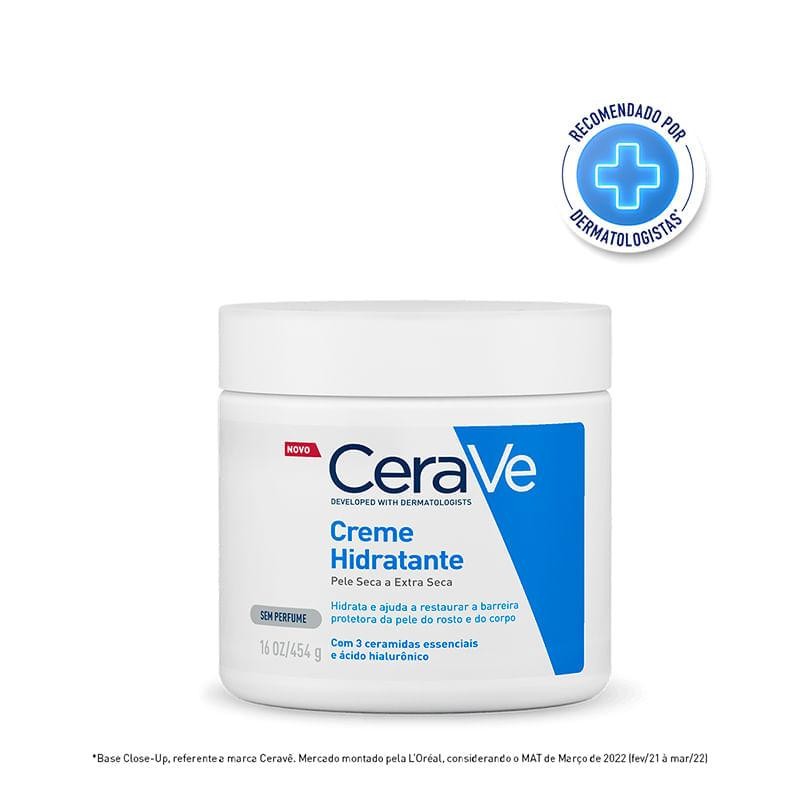 Creme Cerave Hidratante Sem Perfume - Hidratação Profunda e Prolongada O Creme Cerave Hidratante Sem Perfume é a solução ideal para quem busca hidratação intensa e duradoura para a pele. Desenvolvido com a expertise de dermatologistas, esse creme proporciona uma barreira protetora essencial, restaurando e mantendo a hidratação natural da pele. Sua fórmula exclusiva contém três ceramidas essenciais e ácido hialurônico, ingredientes poderosos que ajudam a reter a umidade e melhorar a saúde da pele. Ideal para todos os tipos de pele, incluindo as mais sensíveis, o Creme Cerave é livre de fragrâncias, minimizando o risco de irritações e alergias. Com textura rica e não oleosa, ele é rapidamente absorvido, proporcionando conforto e maciez ao longo do dia. Benefícios: - Hidratação Prolongada: Fórmula com ácido hialurônico que mantém a pele hidratada por 24 horas. - Restaurador da Barreira Cutânea: Contém três ceramidas essenciais que ajudam a restaurar e proteger a barreira natural da pele. - Fórmula Hipoalergênica: Sem perfume e sem parabenos, ideal para peles sensíveis e propensas a alergias. - Textura Não Oleosa: Absorção rápida sem deixar a pele pegajosa ou com brilho excessivo. - Ação Suave e Eficiente: Desenvolvido com tecnologia MVE que libera gradualmente os ativos para hidratação duradoura. Como aplicar Creme Cerave Hidratante ? - Aplique na pele limpa e seca, sempre que necessário. - Aplique generosamente no corpo e rosto, massageando até completa absorção.Evite o contorno dos olhos.Não ingerir. Mantenha longe do alcance de bebês e crianças Qual a diferença entre o Creme Cerave e a Loção Cerave ? Creme Cerave: A Loção Cerave está principalmente na textura e na intensidade da hidratação. O Creme Cerave tem uma textura mais densa e rica, ideal para peles muito secas e áreas específicas como cotovelos e joelhos, proporcionando hidratação intensa e prolongada ao formar uma barreira protetora na pele. É recomendado para peles secas a extremamente secas, incluindo peles sensíveis. Loção Cerave : É mais leve e fluida, o que facilita a aplicação e a absorção rápida, oferecendo hidratação suave e confortável sem deixar sensação pegajosa. Ela é ideal para uso diário em peles normais a secas, proporcionando hidratação sem pesar. Em resumo, o Creme Cerave é mais concentrado e indicado para hidratação intensa, enquanto a Loção Cerave é leve e perfeita para quem prefere uma textura suave no dia a dia. Por Que Escolher o Creme Cerave Hidratante? - Recomendado por Dermatologistas: Marca reconhecida mundialmente por sua eficácia e segurança para todos os tipos de pele. - Tecnologia MVE: Liberação contínua de ativos que garantem hidratação prolongada por 24 horas. - Versatilidade e Conforto: Ideal para o uso diário no rosto e no corpo, oferecendo cuidado completo e proteção.Fórmula Delicada e Segura: Sem perfume e hipoalergênica, é perfeita para peles sensíveis e propensas a irritações. - Custo-Benefício: Embalagem econômica de 454g que rende muito, proporcionando hidratação intensa por mais tempo. Principais Ativos: - Ceramidas Essenciais (1, 3 e 6-II): Restauram e mantêm a barreira natural da pele, prevenindo a perda de umidade. - Ácido Hialurônico: Retém a umidade, promovendo hidratação profunda e suavidade. - Tecnologia MVE: Liberação contínua de ativos para hidratação prolongada ao longo do dia. - Glicerina: Agente emoliente que suaviza e melhora a textura da pele. - Colesterol e Fitossfingosina: Ingredientes que ajudam a manter a barreira protetora da pele e promovem elasticidade. Perguntas Frequentes 1. O Creme Cerave pode ser usado no rosto? Sim! A fórmula é não comedogênica, o que significa que não obstrui os poros, sendo segura para o uso facial. 2. É adequado para peles sensíveis? Sim! Sem perfume e com fórmula hipoalergênica, é ideal para peles sensíveis e propensas a irritações. 3. Pode ser usado em crianças? Sim, é seguro para uso em crianças a partir de 3 anos, mas consulte um dermatologista em caso de dúvidas específicas. 4. Deixa a pele oleosa? Não! O Creme Cerave possui textura não oleosa e é rapidamente absorvido, deixando a pele suave e sem brilho.