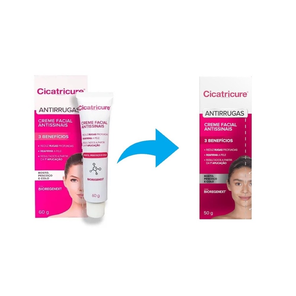 O novo Cicatricure Creme Facial Antissinais possui a tecnologia Bio-Regenext que transmite informações de uma célula para outra, promove a regeneração natural e repara os danos na pele proporcionando aparência mais jovem. Recupera o envelhecimento da pele de 2 anos em 2 meses.