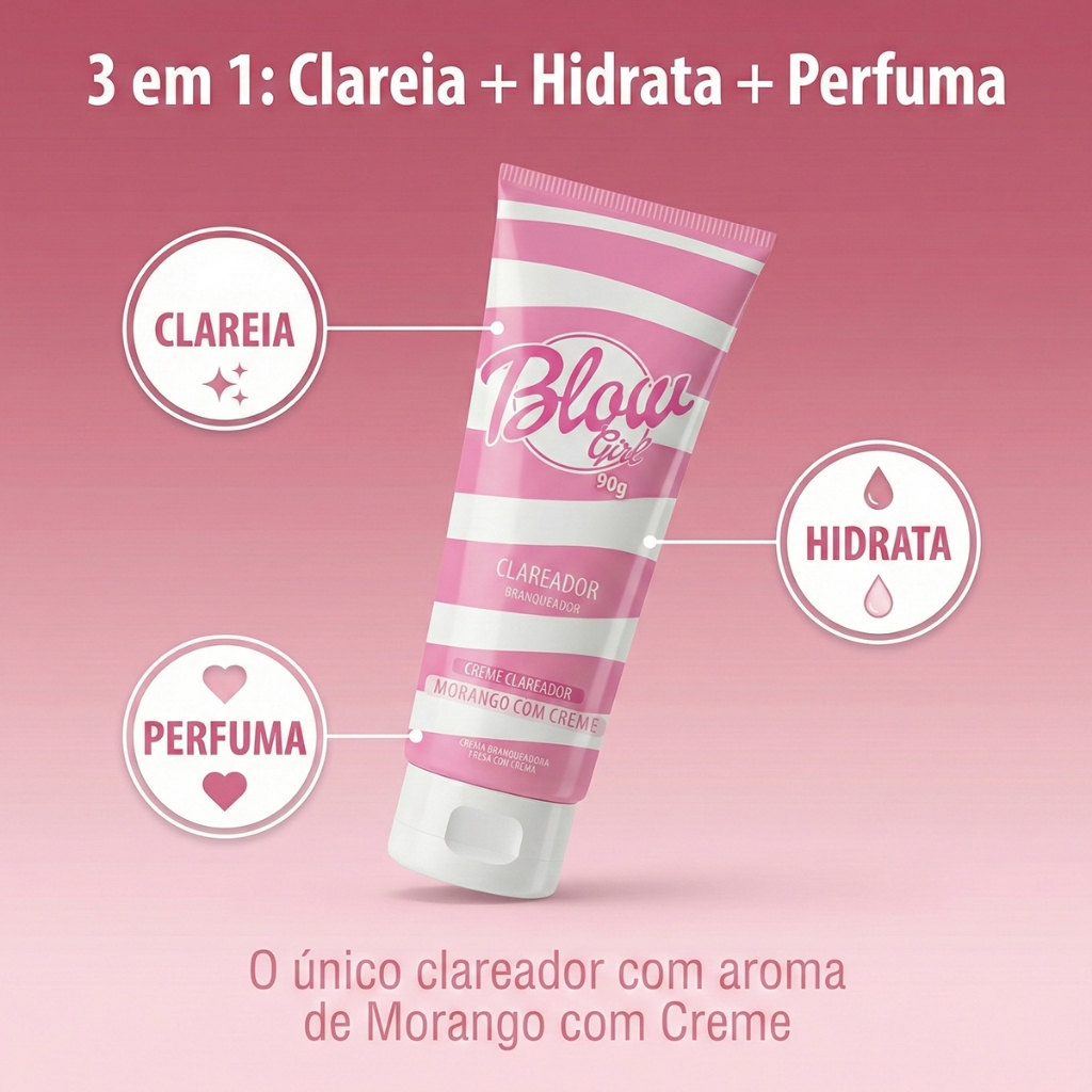 Creme Clareador Blow Girl 90g Manchas Visíveis na Pele Morango Creme Hotflowers Original Reparação