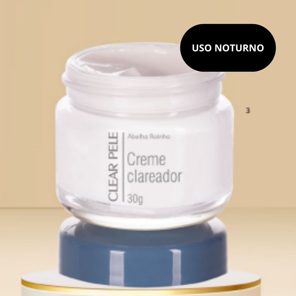 | Creme Clareador Facial de Manchas Noturno Clear Pele 30g Abelha Rainha este produto | R$ 29,99 | 9% | 4.9/5 | 19 |