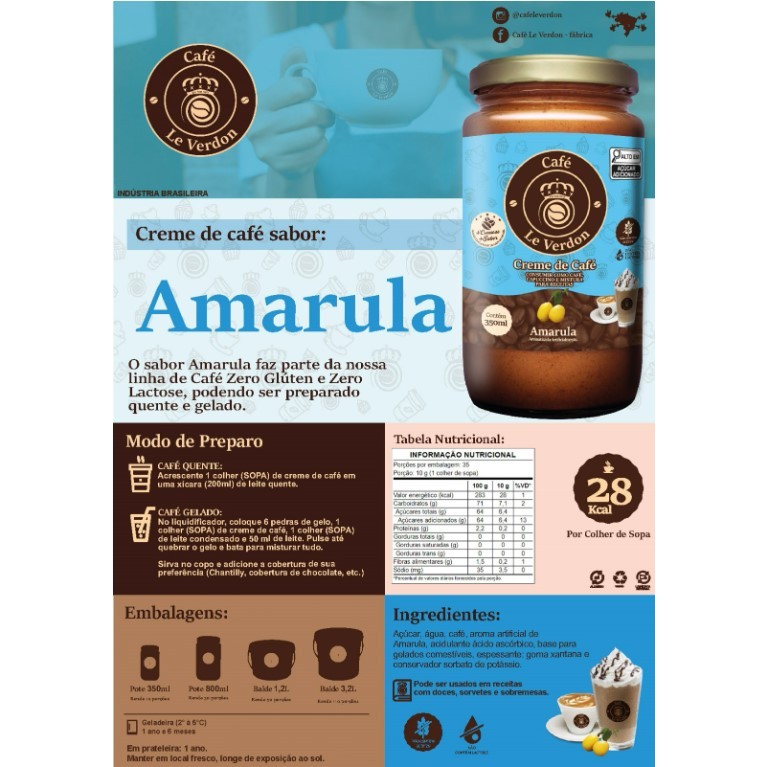 Descubra o encanto do nosso CAFÉ SABOR AMARULA! ☕🍂 Um delicioso creme de café com sabor marcante e a suavidade única da Amarula, que transforma cada gole em uma experiência inesquecível. A combinação perfeita entre o sabor intenso do café e o toque cremoso e levemente adocicado da Amarula vai conquistar seu paladar e despertar seus sentidos. Versátil e prático, o CAFÉ SABOR AMARULA pode ser preparado com leite, para aquecer suas manhãs com conforto, quanto gelado, ideal para refrescar e energizar seus dias. Seja qual for a forma, você terá um momento especial de prazer e sofisticação a qualquer hora. Não perca a chance de levar para casa essa união perfeita de sabores que vai transformar sua rotina de café em um ritual delicioso e marcante. Experimente o CAFÉ SABOR AMARULA e sinta a diferença que um café de qualidade pode fazer no seu dia! Cappuccino, Café Gelado e Drinks! Você merece esse sabor único!
